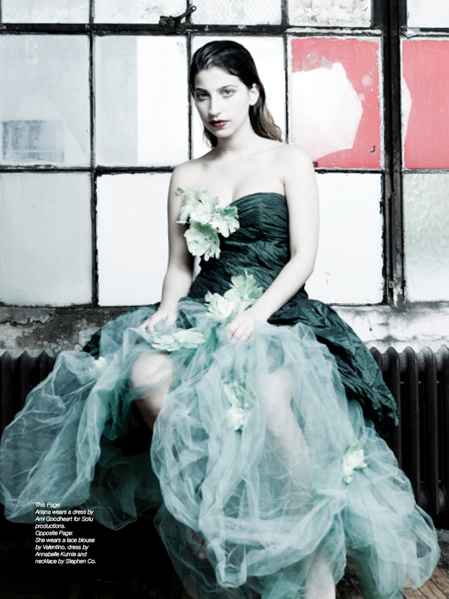 Shot 2: Ariana wears a dress by Ami Goodheart for Sotu productions.