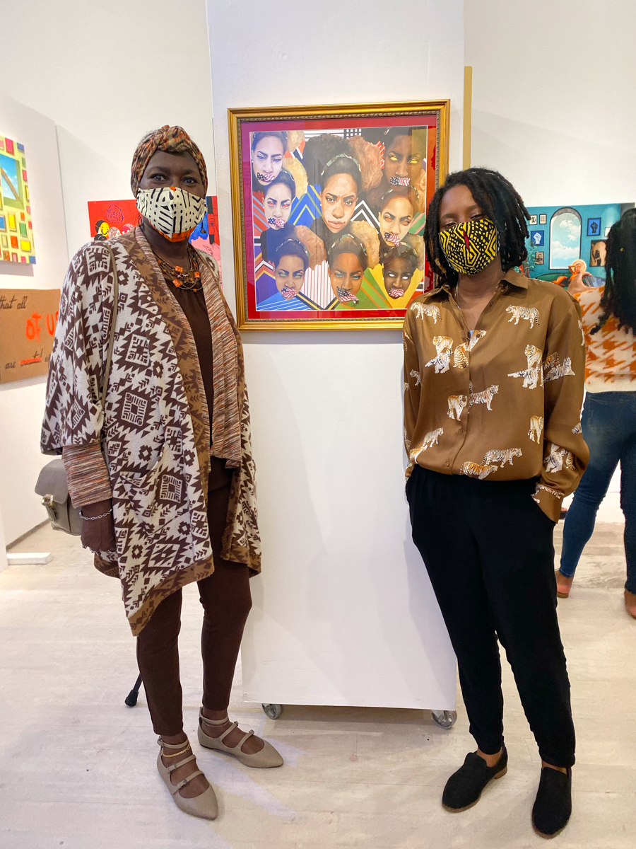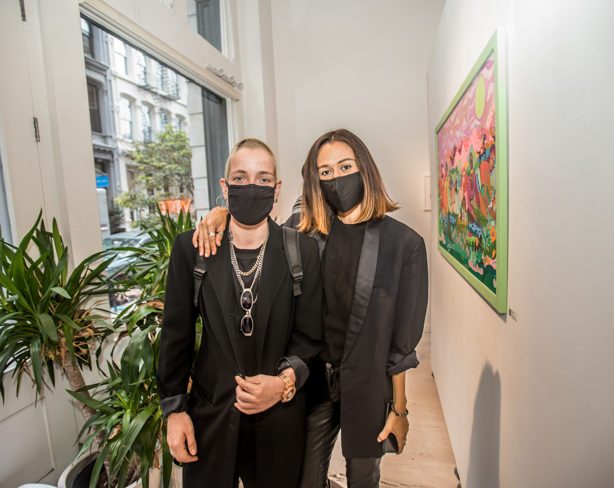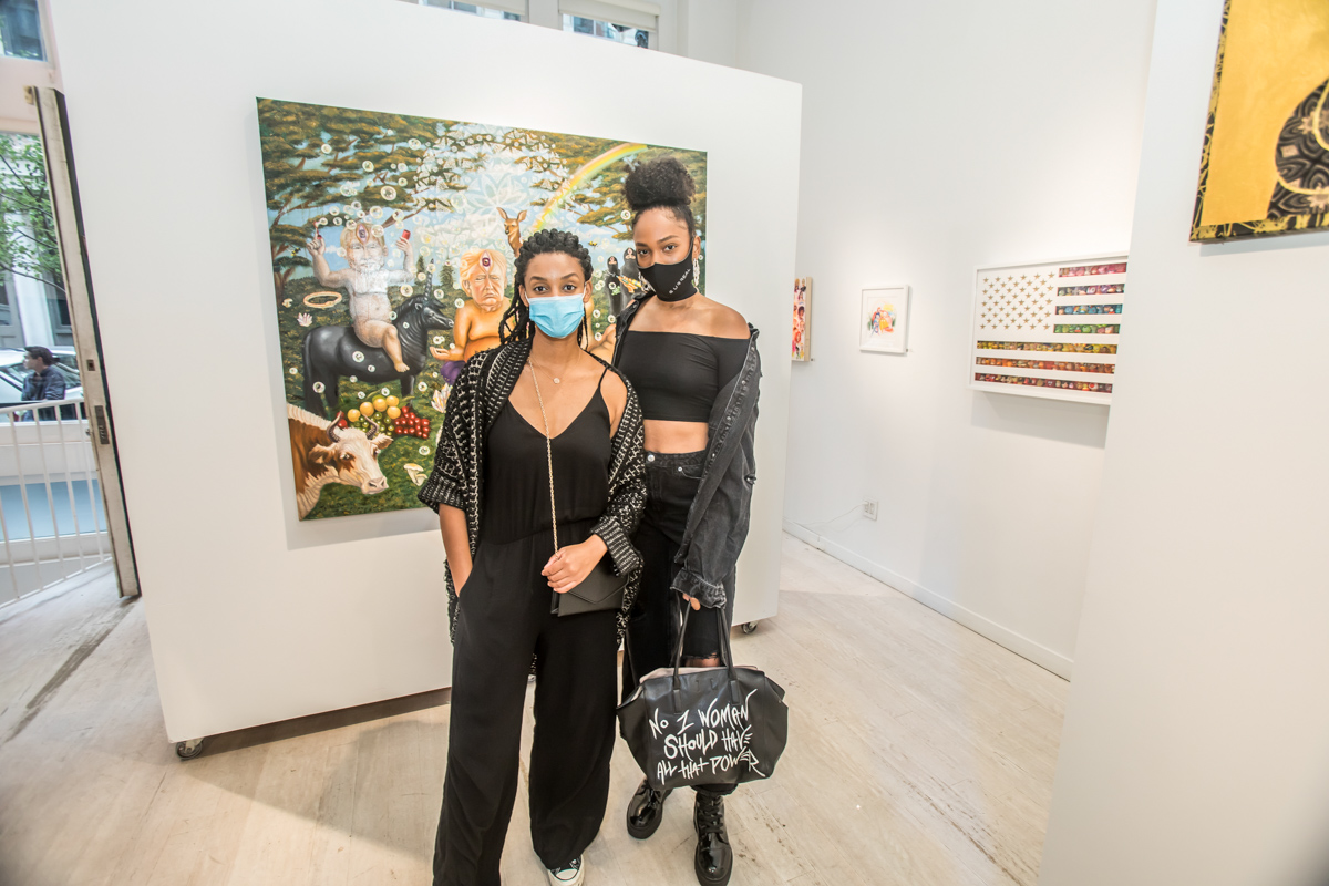 Artist Devynity Wray and Indira Cesarine at the "Art4Equality x Life, Liberty, The Pursuit of Happiness" Exhibition Opening Reception at The Untitled Space, presented in collaboration with SaveArtSpace and Art4Equality