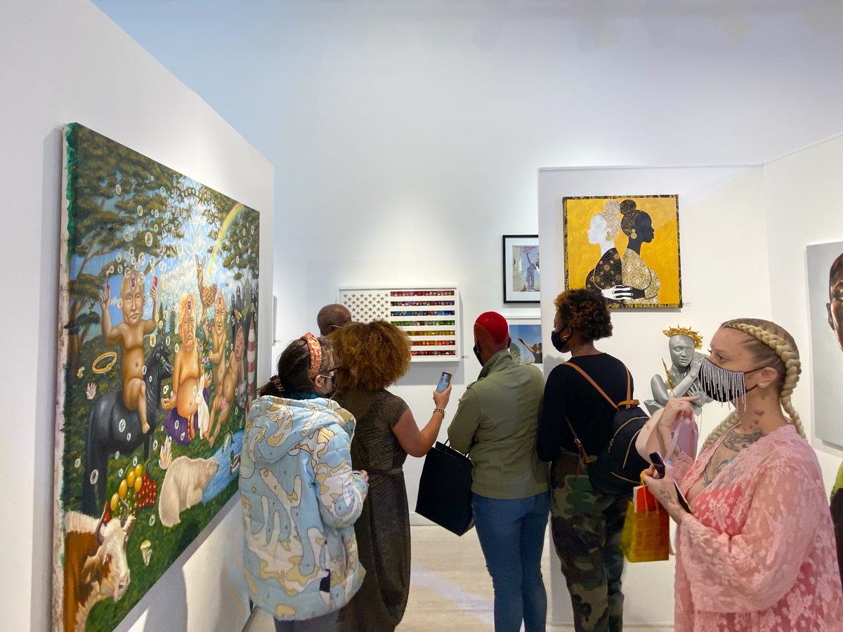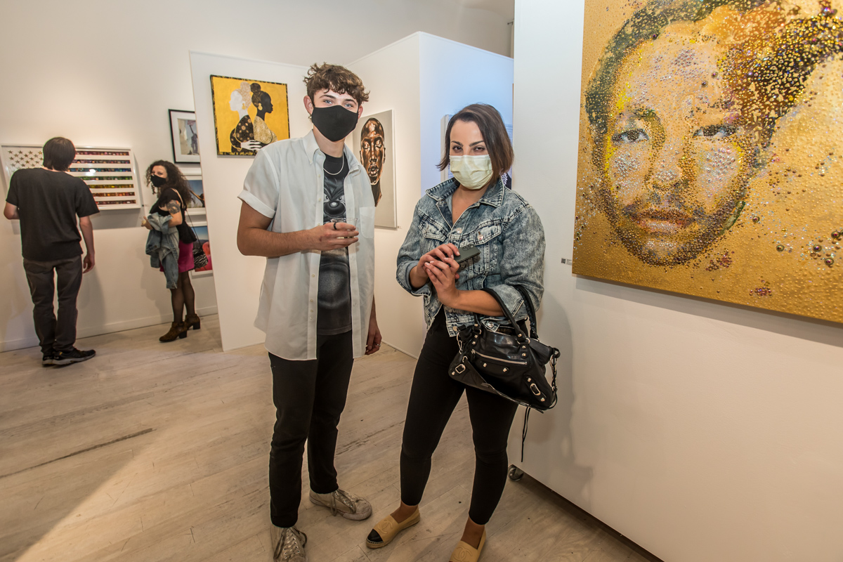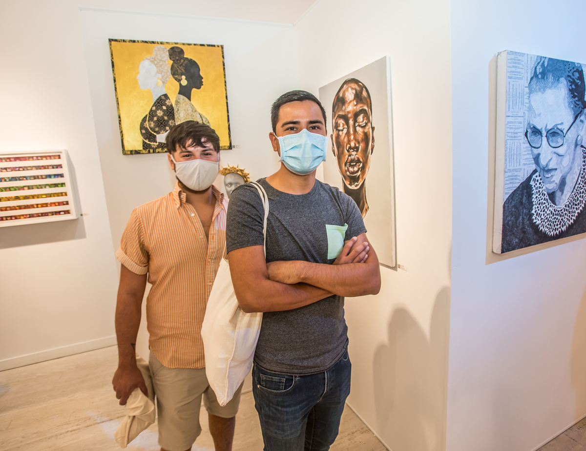 Artist Cabell Molina and guests at the "Art4Equality x Life, Liberty, The Pursuit of Happiness" Exhibition Opening Reception at The Untitled Space, presented in collaboration with SaveArtSpace and Art4Equality