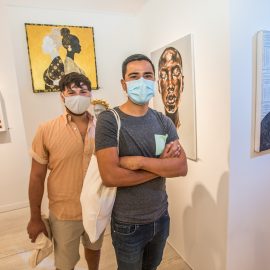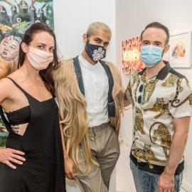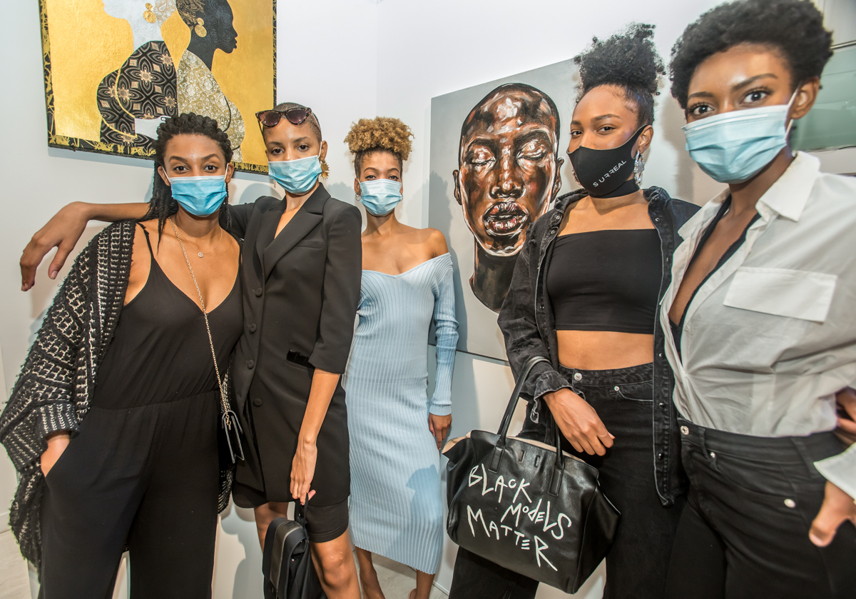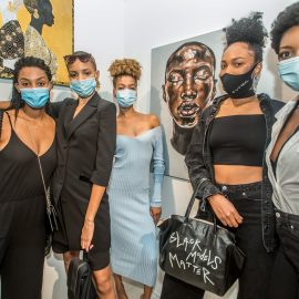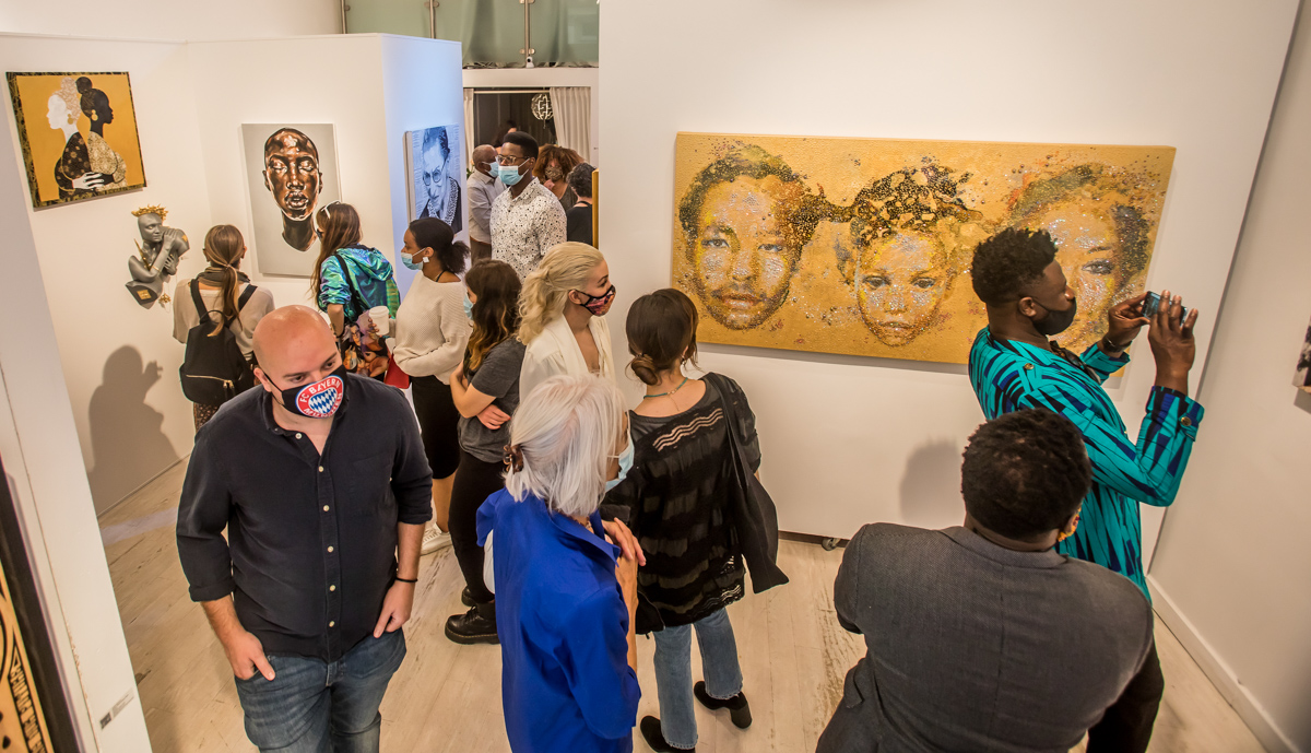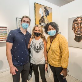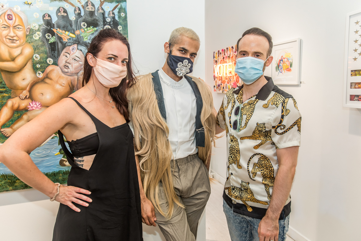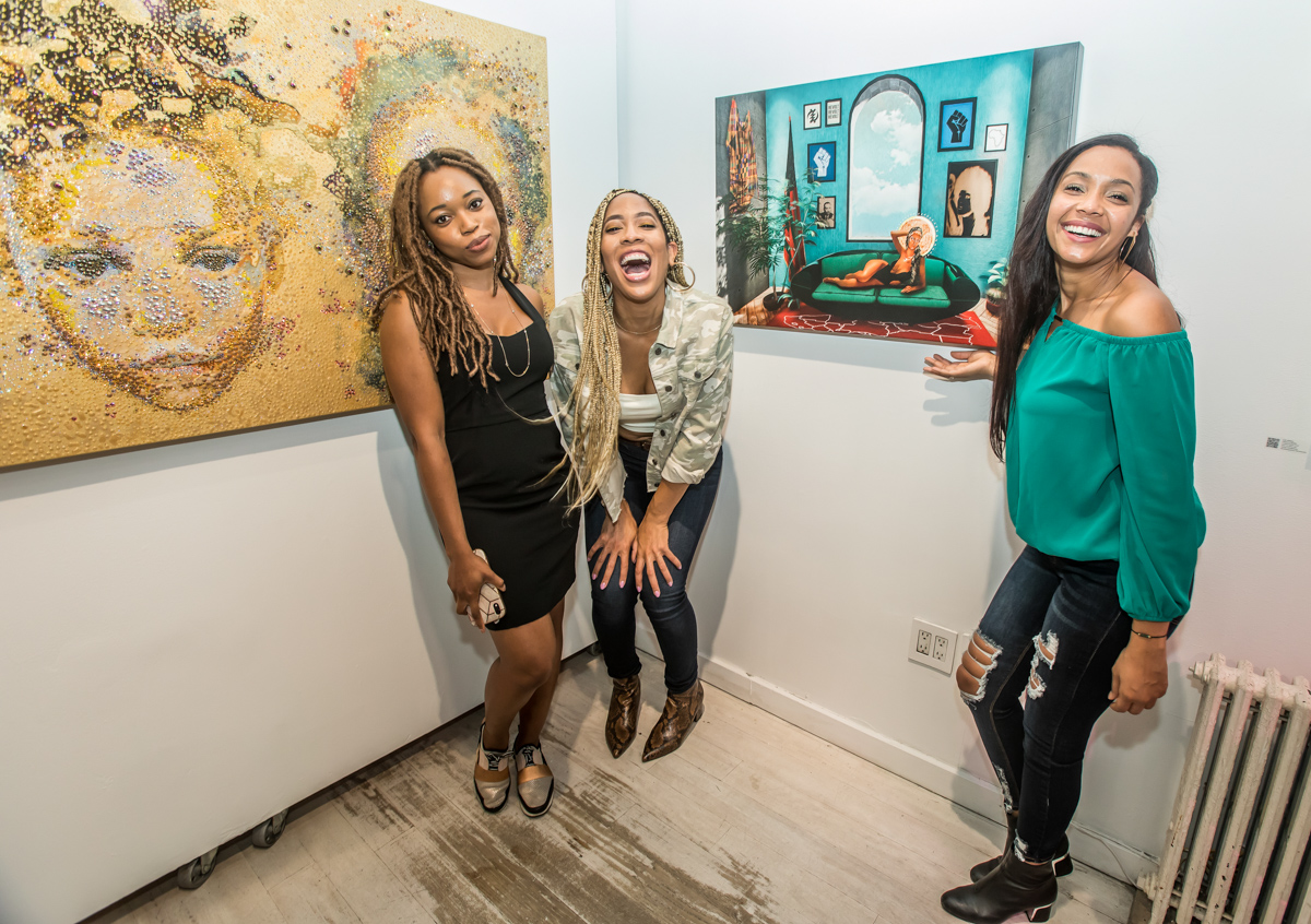 Artist Cabell Molina and guests at the "Art4Equality x Life, Liberty, The Pursuit of Happiness" Exhibition Opening Reception at The Untitled Space, presented in collaboration with SaveArtSpace and Art4Equality
