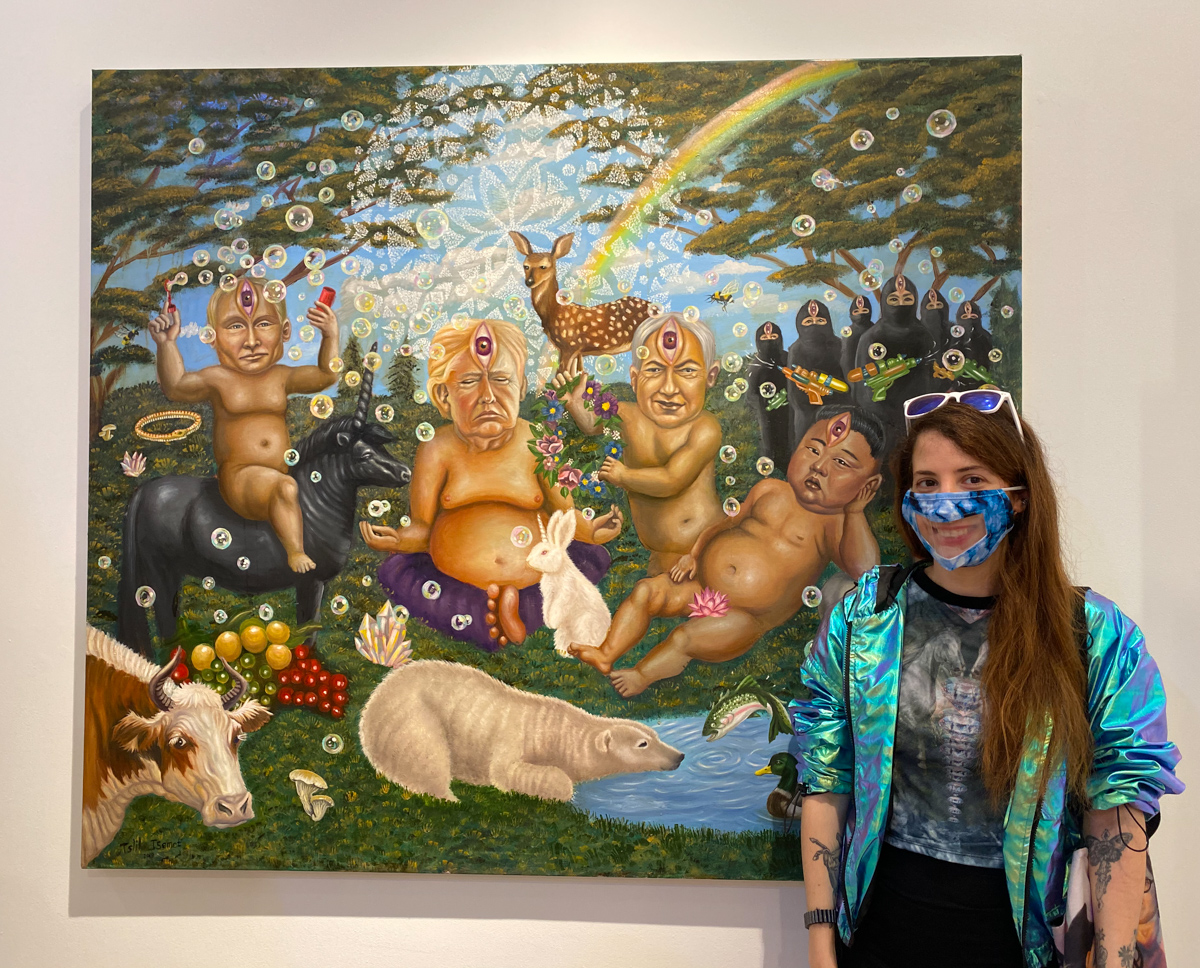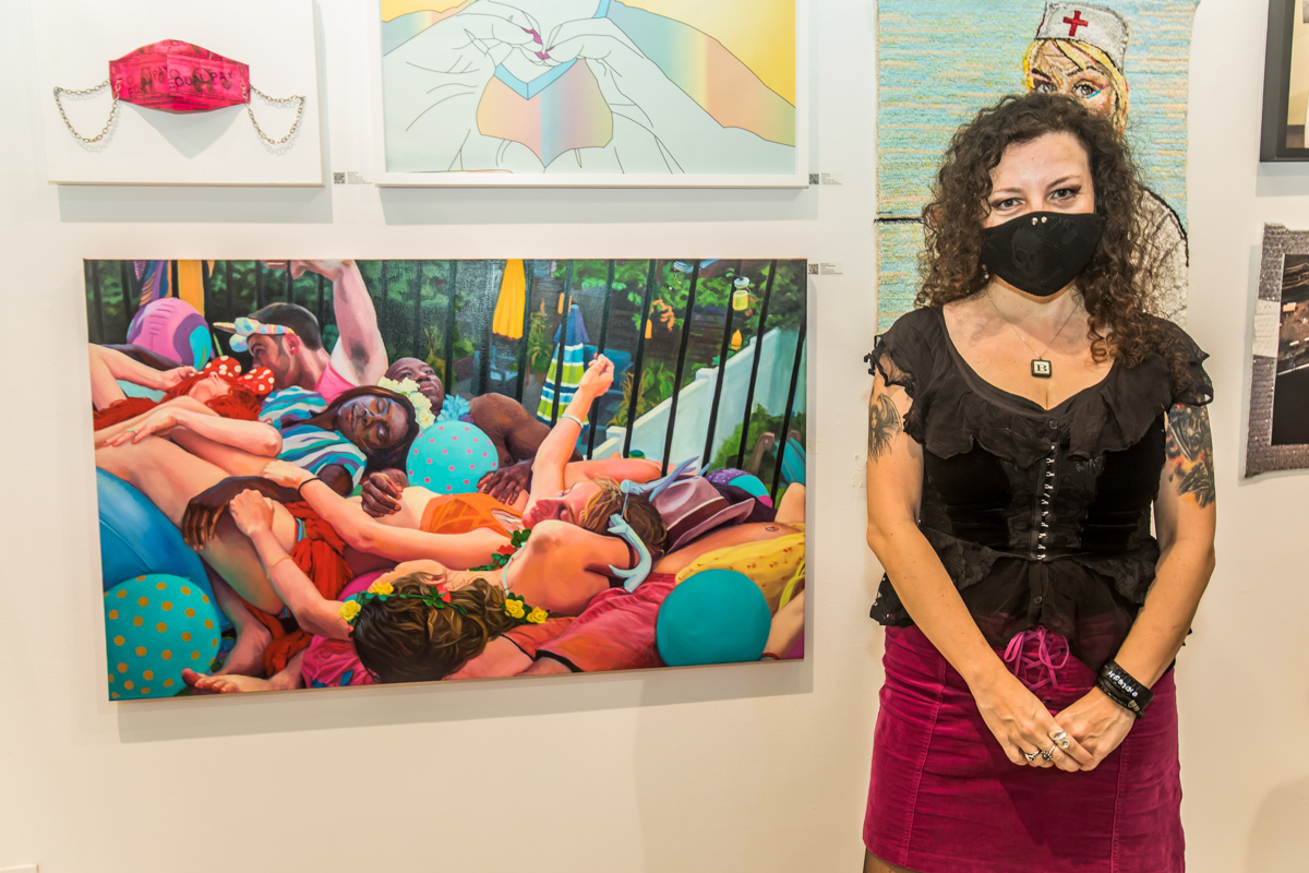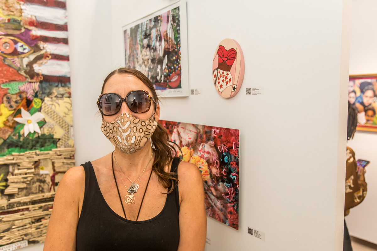 Artist Rachel Van Der Nacht at the "Art4Equality x Life, Liberty, The Pursuit of Happiness" Exhibition Opening Reception at The Untitled Space, presented in collaboration with SaveArtSpace and Art4Equality