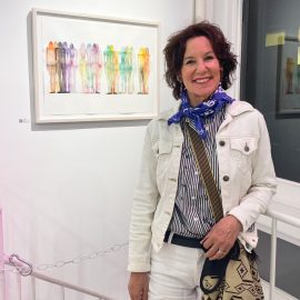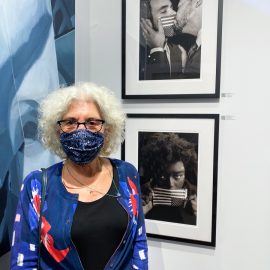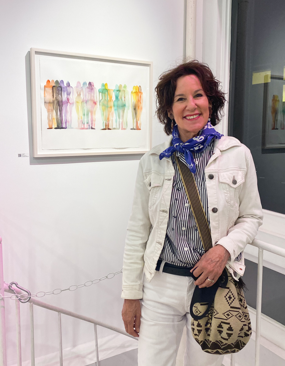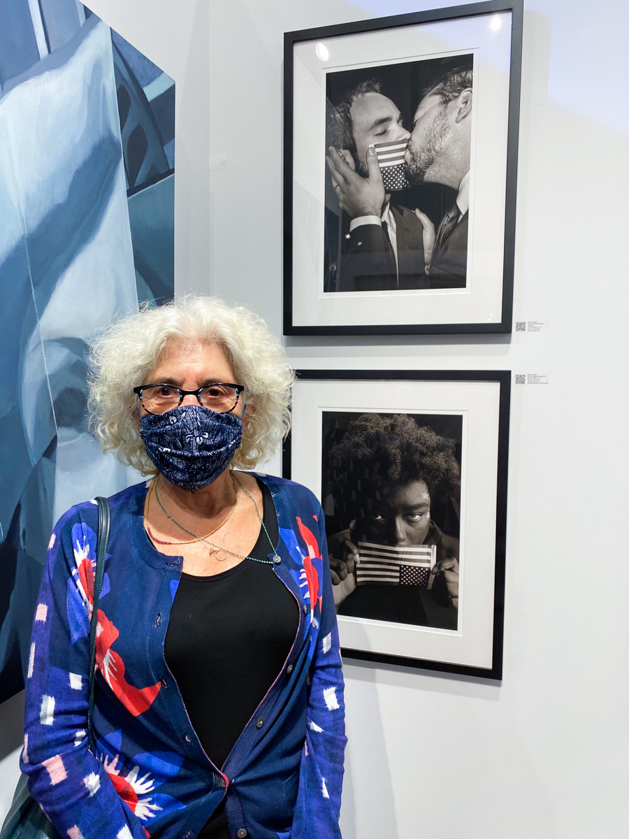 Artist Donna Bassin at the "Art4Equality x Life, Liberty, The Pursuit of Happiness" Exhibition Opening Reception at The Untitled Space, presented in collaboration with SaveArtSpace and Art4Equality