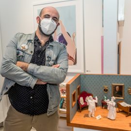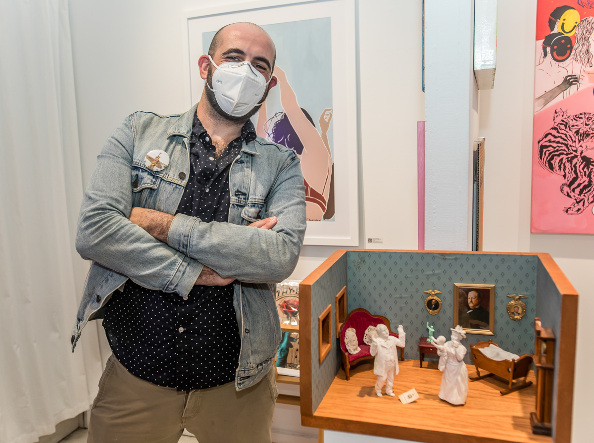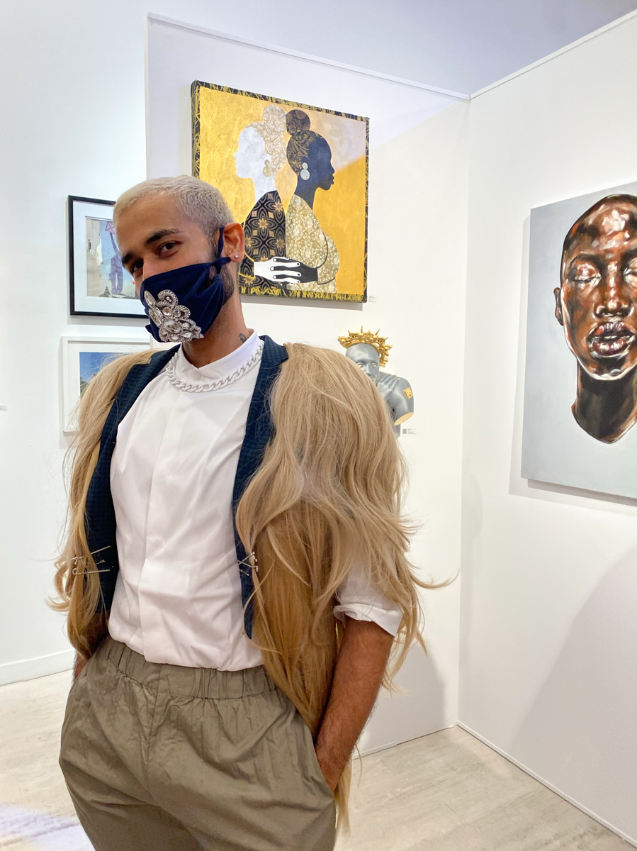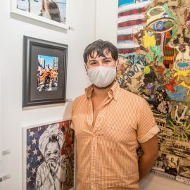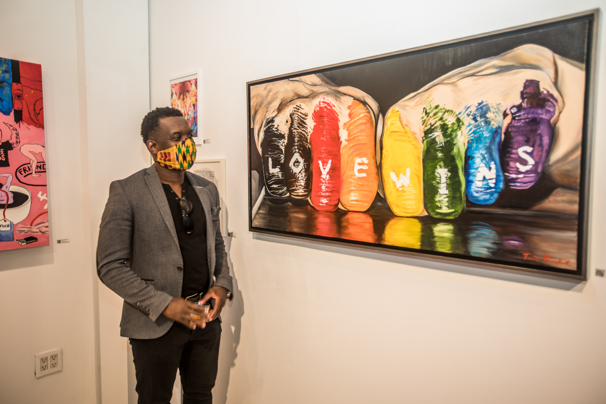 Artist Dan Alvarado at the "Art4Equality x Life, Liberty, The Pursuit of Happiness" Exhibition Opening Reception at The Untitled Space, presented in collaboration with SaveArtSpace and Art4Equality
