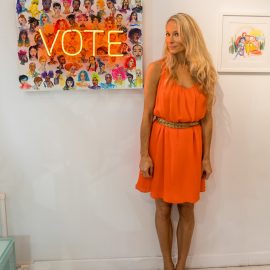 “We live in an unprecedented time, our liberties robbed by a global pandemic, which laid painfully bare the inequities that have plagued the most vulnerable in our society for far too long. Political polarization in the United States is reaching critical mass with a divisive political system at war. Realities of social inequality and racial injustice are challenging our ability to have confidence in a promising future. With the 2020 elections approaching, I felt that it was a crucial time to create an opportunity for artists to respond, with the artwork presented in a public platform where it can reach an audience of millions of people every day and promote an inclusive dialogue. The billboard transformed into an art display is an innovative, and ultimately accessible way to present contemporary art, transforming spaces normally dedicated to advertising into public art that has power and impact,” stated curator Indira Cesarine of the exhibition.