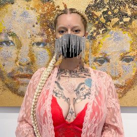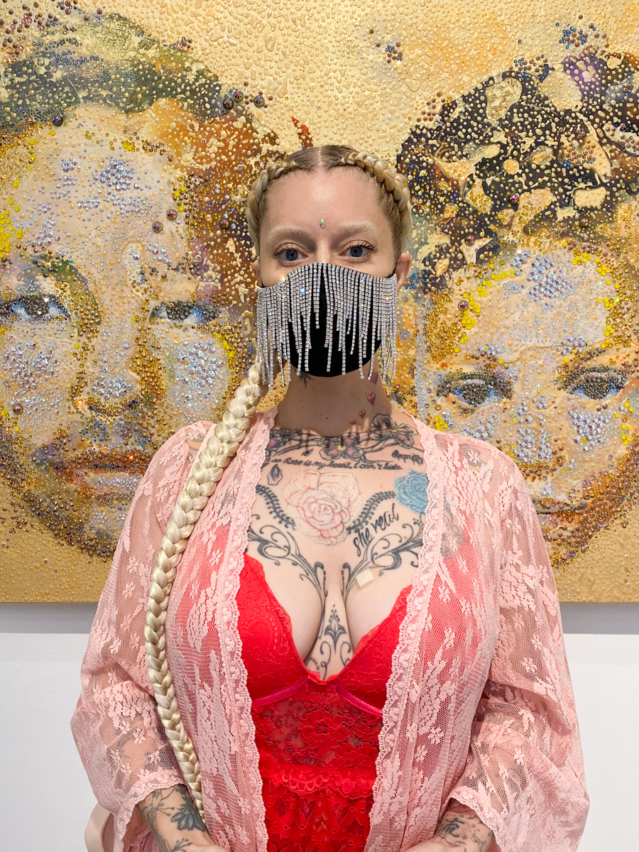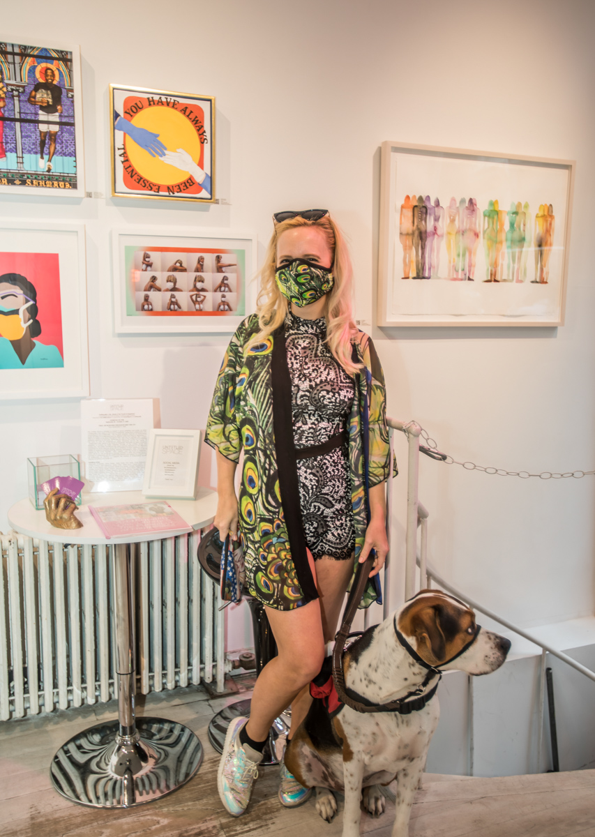 Artist Coco Dolle at the "Art4Equality x Life, Liberty, The Pursuit of Happiness" Exhibition Opening Reception at The Untitled Space, presented in collaboration with SaveArtSpace and Art4Equality