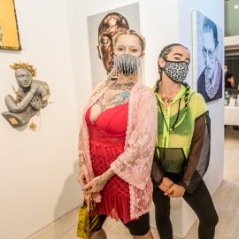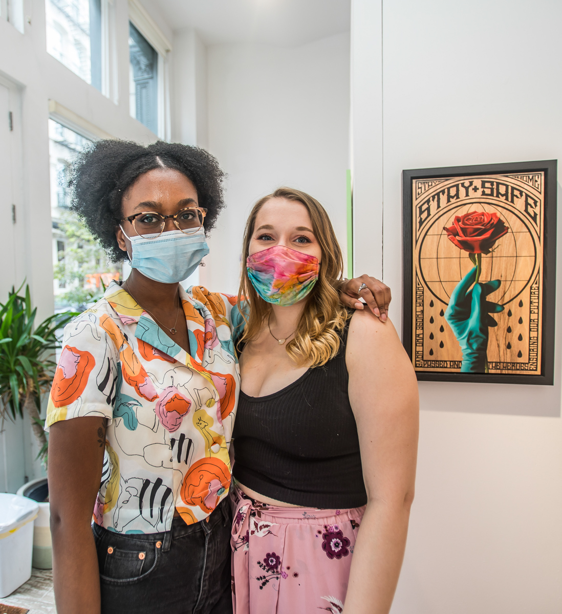 Artist Coco Dolle and Artist/Curator Indira Cesarine at the "Art4Equality x Life, Liberty, The Pursuit of Happiness" Exhibition Opening Reception at The Untitled Space, presented in collaboration with SaveArtSpace and Art4Equality
