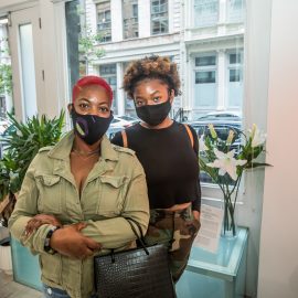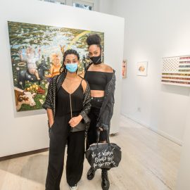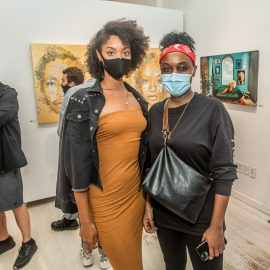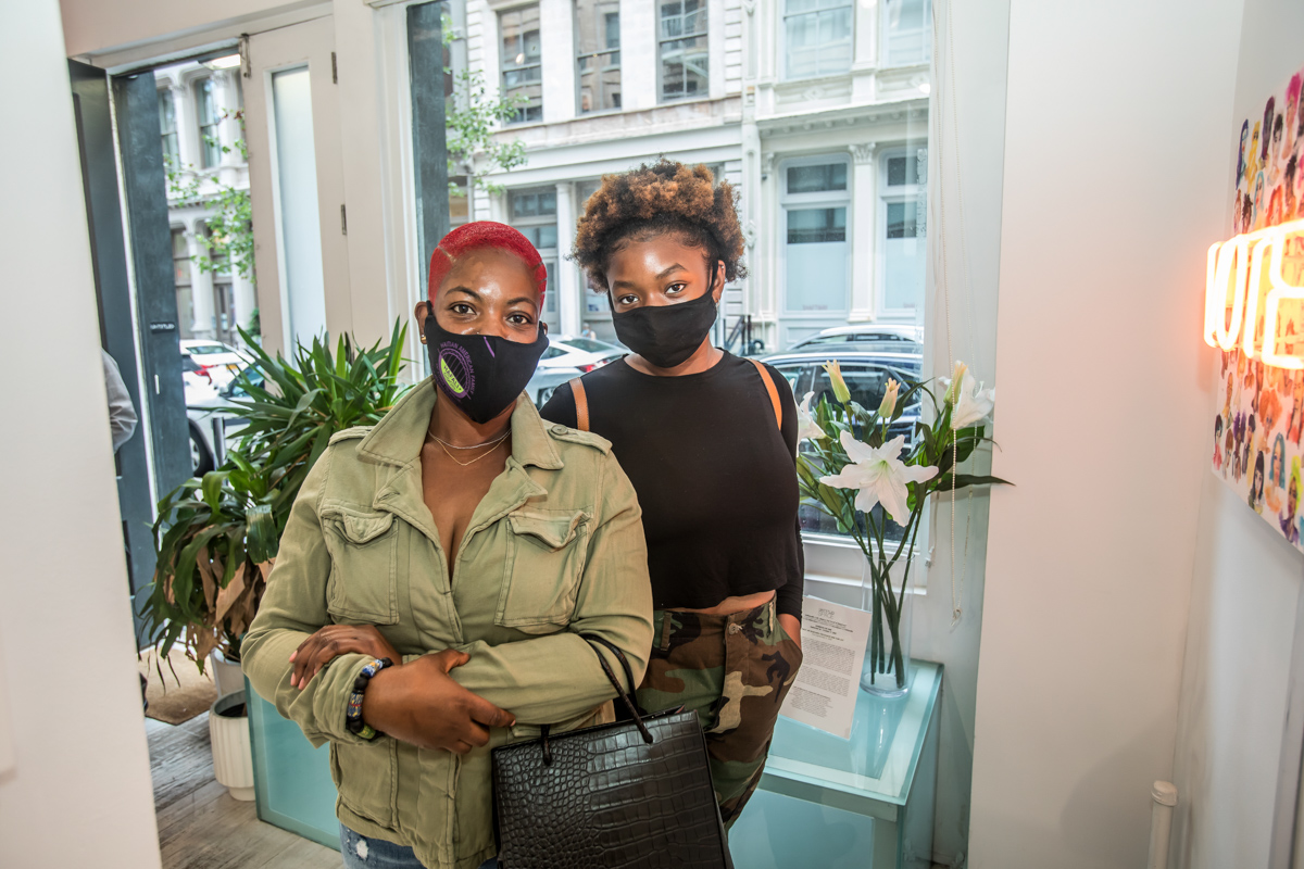 Shenell Mcfarlane and Alyssa Bryn at the "Art4Equality x Life, Liberty, The Pursuit of Happiness" Exhibition Opening Reception at The Untitled Space, presented in collaboration with SaveArtSpace and Art4Equality