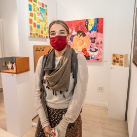 Artist Buket Savci at the "Art4Equality x Life, Liberty, The Pursuit of Happiness" Exhibition Opening Reception at The Untitled Space, presented in collaboration with SaveArtSpace and Art4Equality