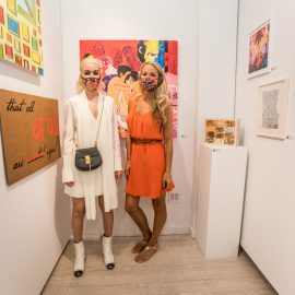 Artist Lola Jiblazee and guest Jenna Burke at the "Art4Equality x Life, Liberty, The Pursuit of Happiness" Exhibition Opening Reception at The Untitled Space, presented in collaboration with SaveArtSpace and Art4Equality