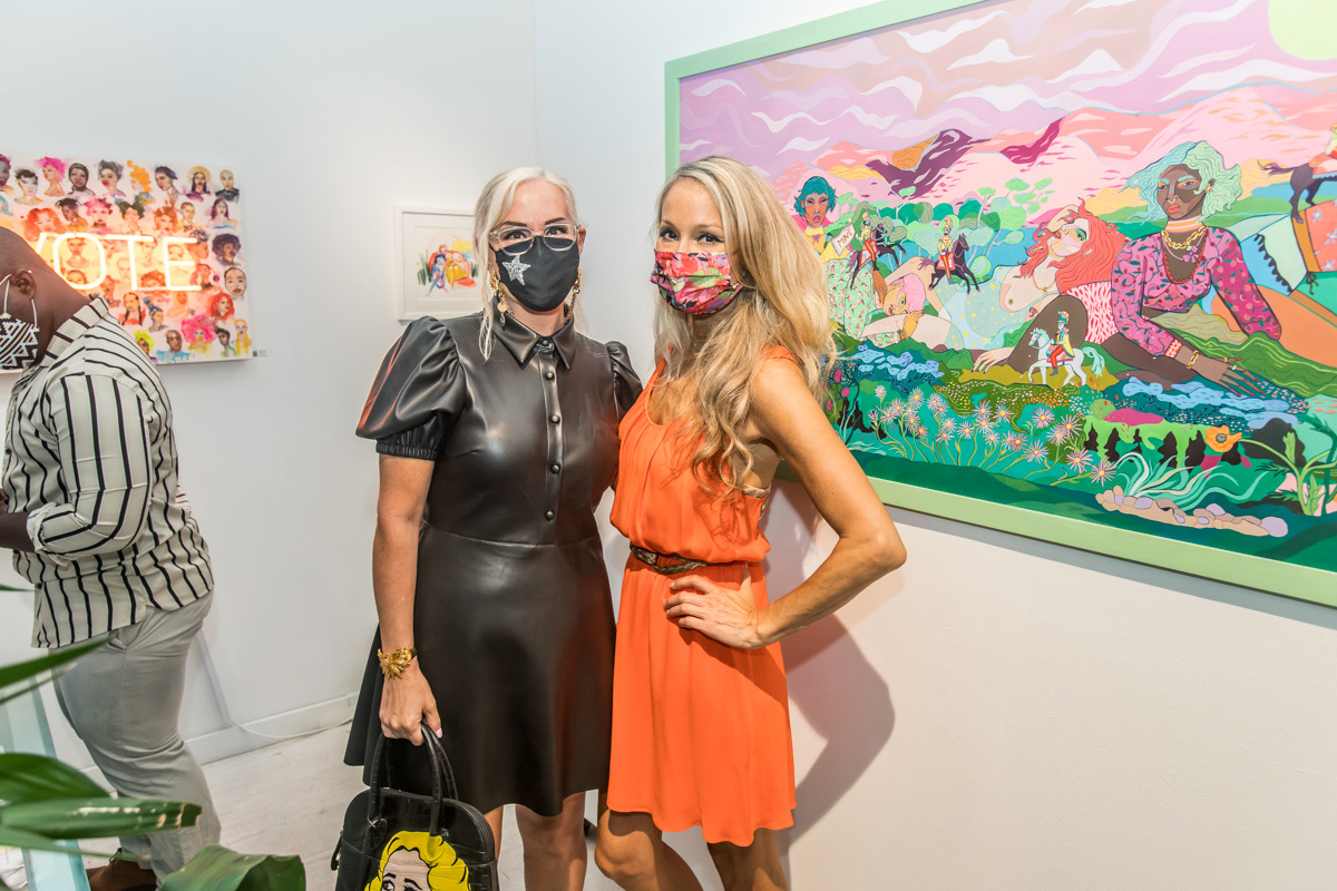 Nicole Gordon and Indira Cesarine at the "Art4Equality x Life, Liberty, The Pursuit of Happiness" Exhibition Opening Reception at The Untitled Space, presented in collaboration with SaveArtSpace and Art4Equality