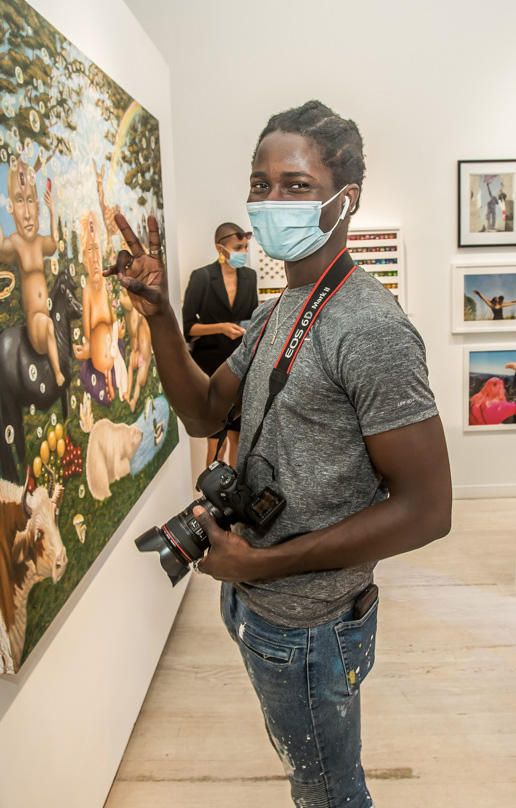 Akeem Duncan at the "Art4Equality x Life, Liberty, The Pursuit of Happiness" Exhibition Opening Reception at The Untitled Space, presented in collaboration with SaveArtSpace and Art4Equality