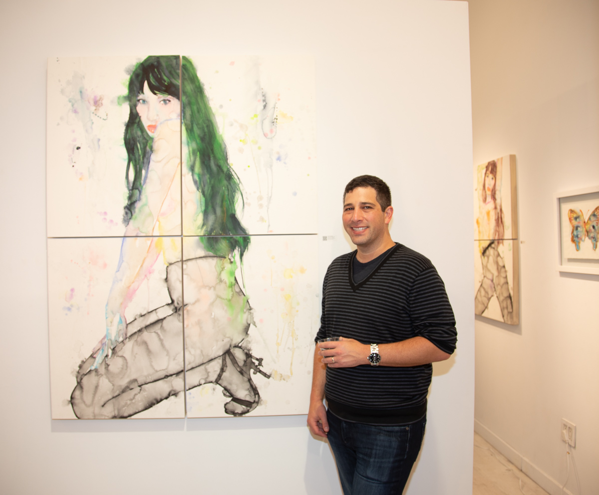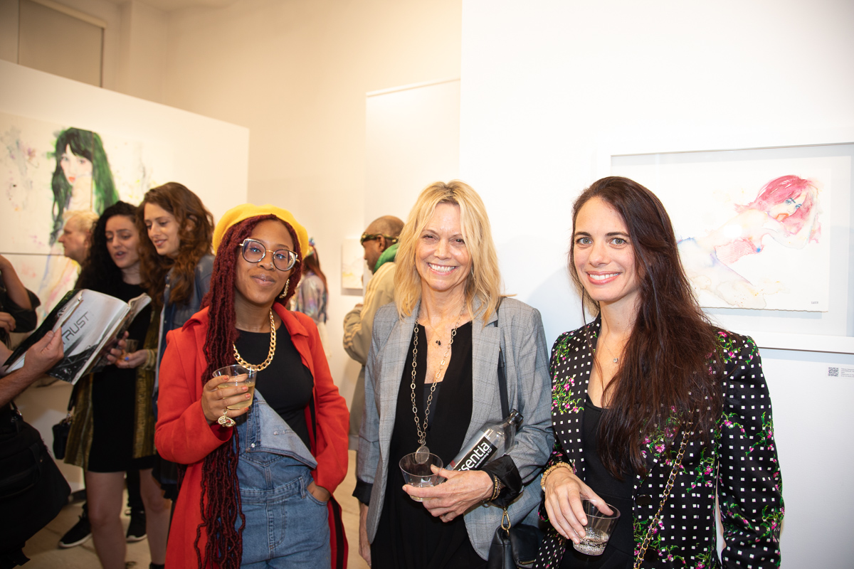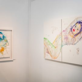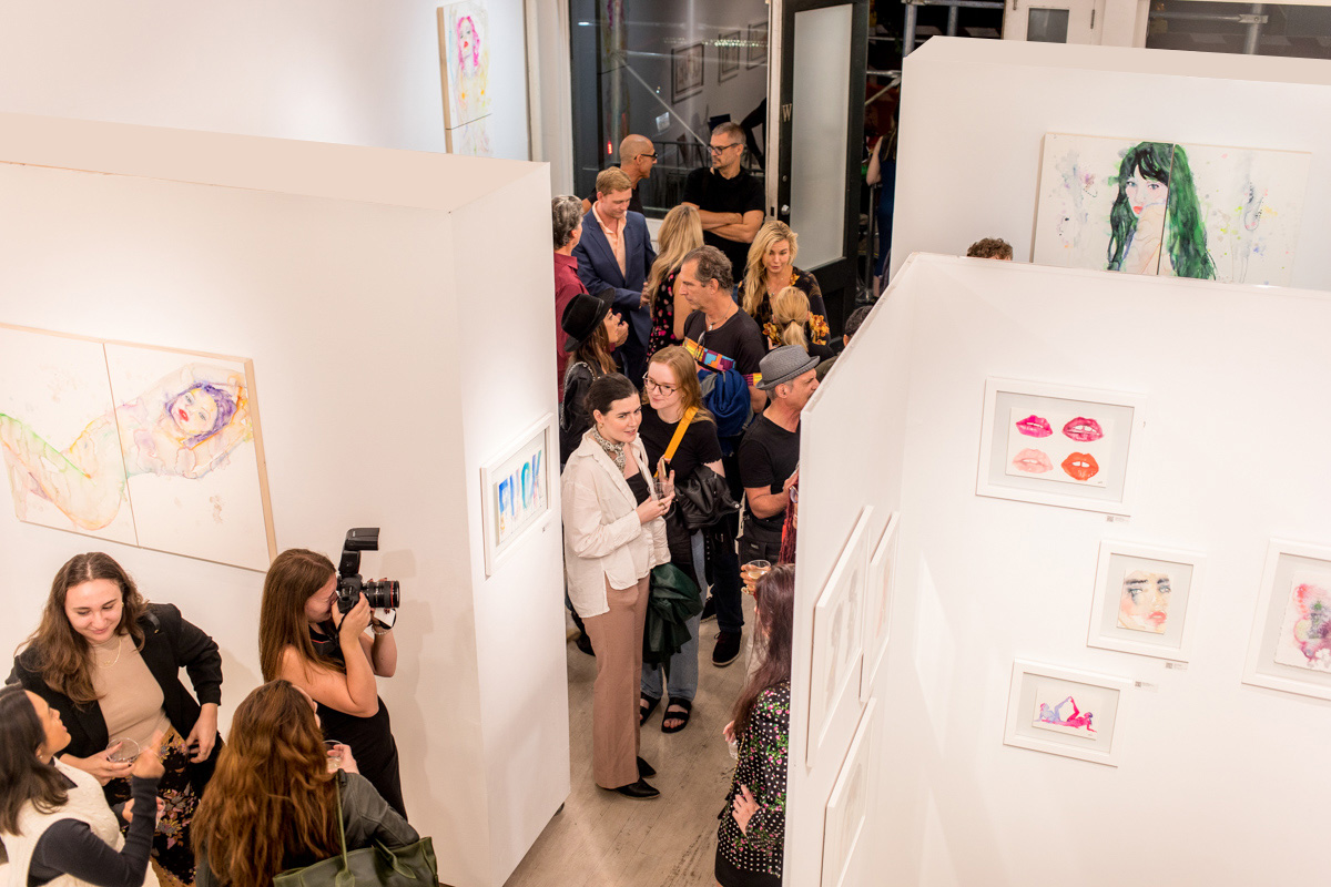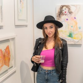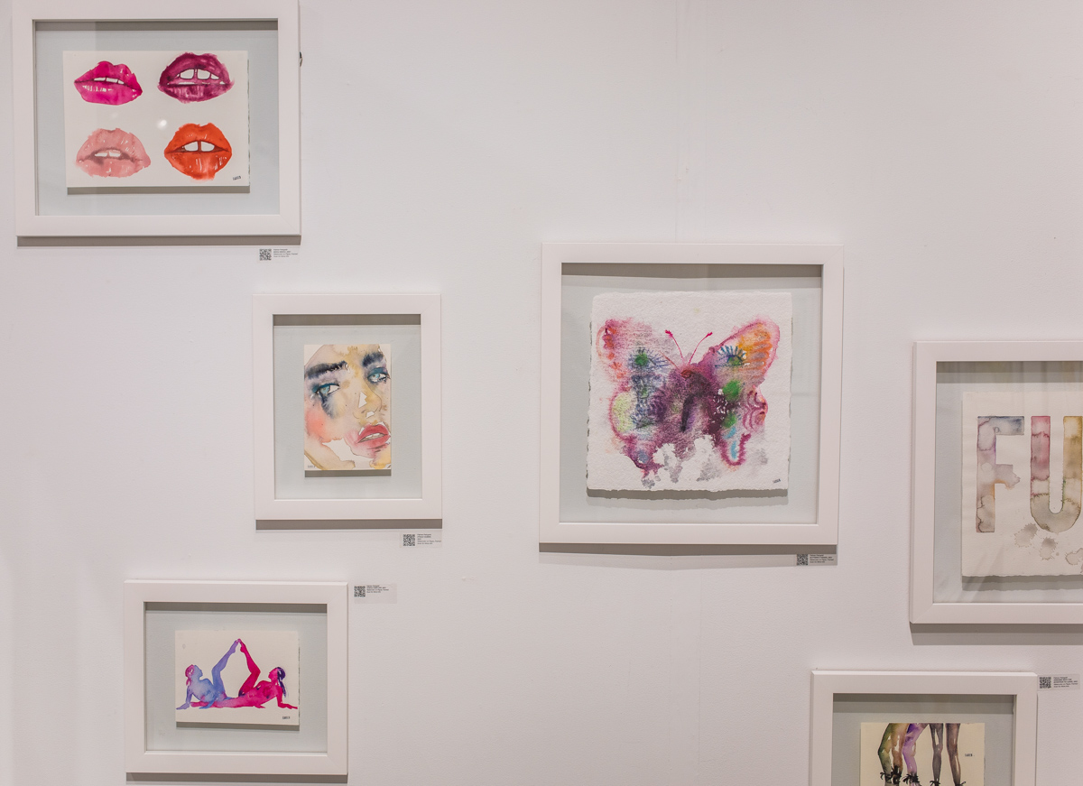 On October 21st, The Untitled Space celebrated the 3rd solo exhibition of artist Fahren Feingold “WET DREAMS,” at the gallery in Tribeca with wine and watercolors. The exhibition, curated by Indira Cesarine, is on view through November 13th, 2021, and premieres the latest series of works on paper and panel by the artist known for her ethereal feminine nudes that emphasize the female gaze through vibrant brush strokes using her signature wet-on-wet watercolor technique.