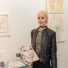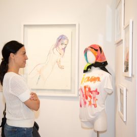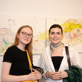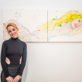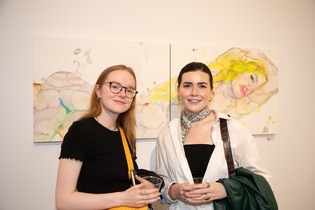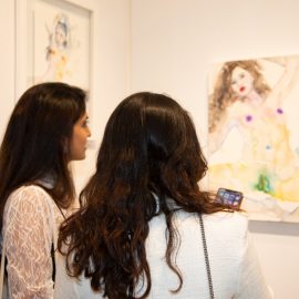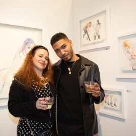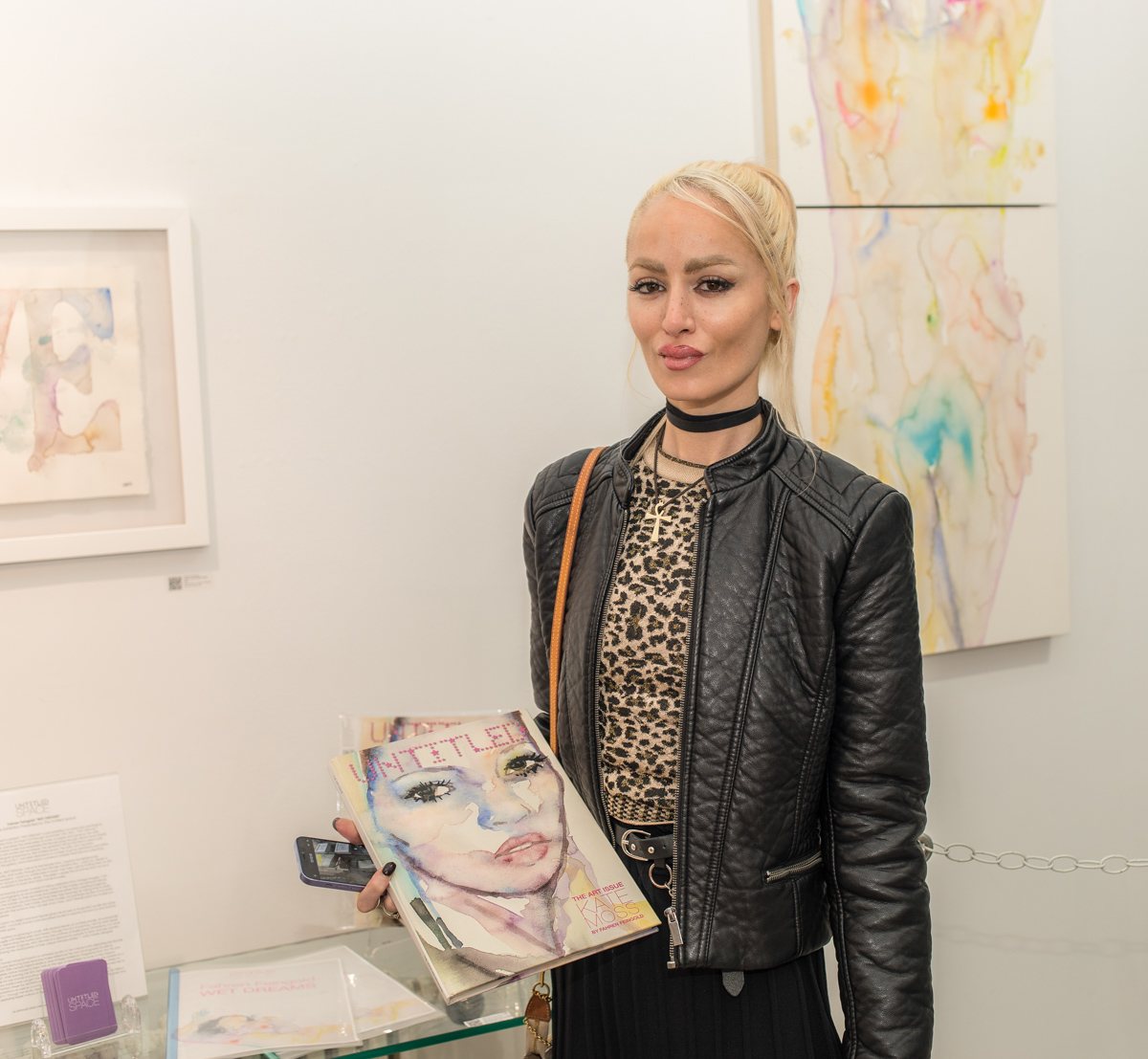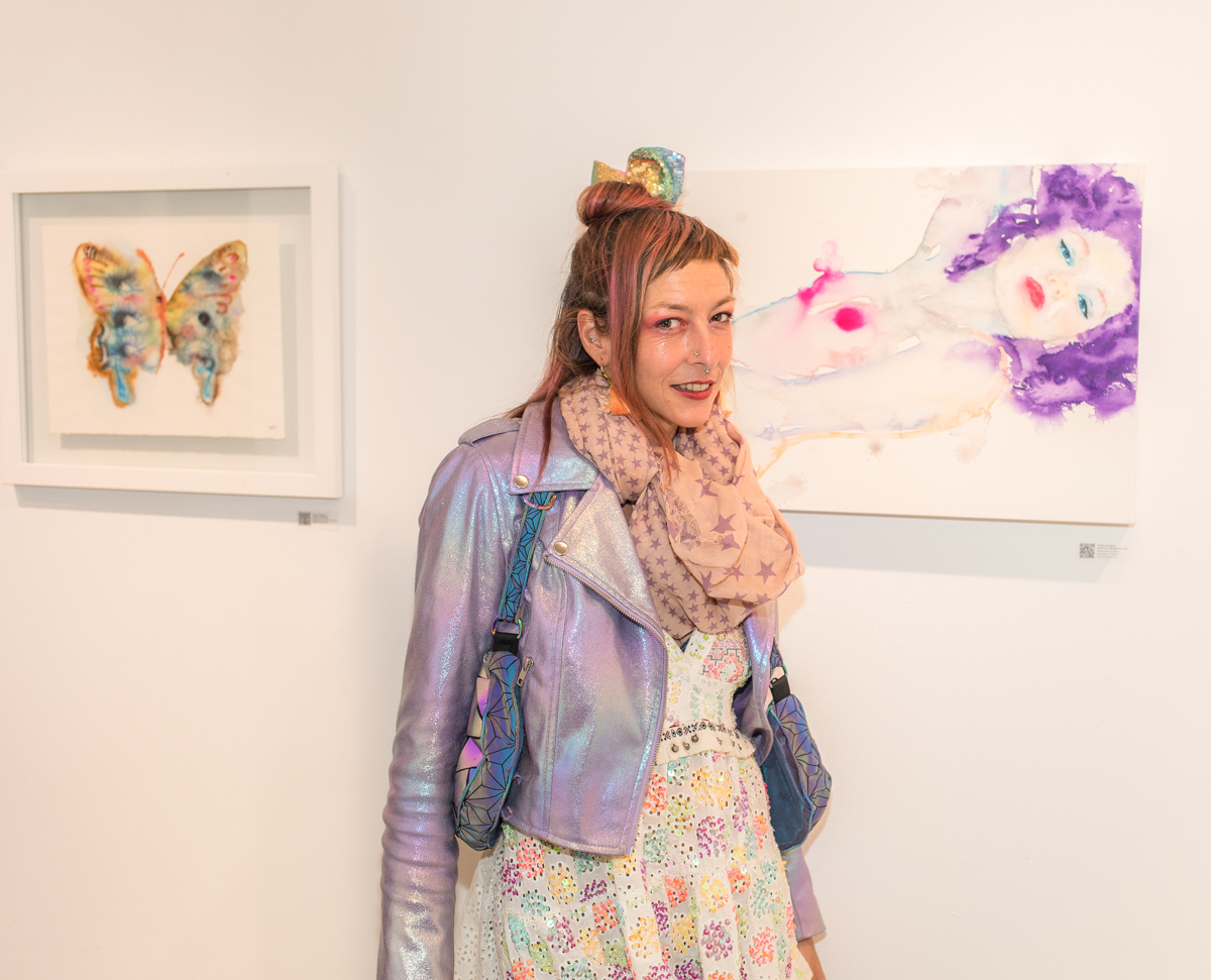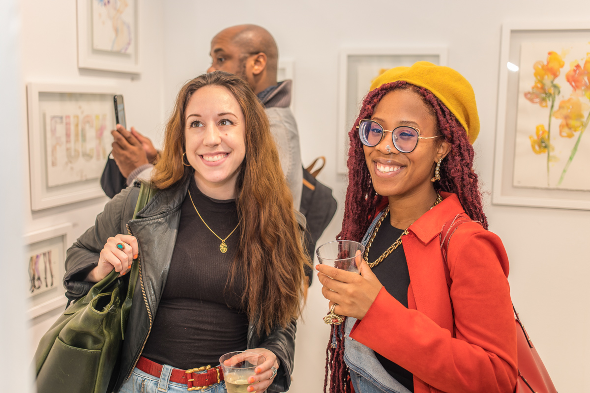 On October 21st, The Untitled Space celebrated the 3rd solo exhibition of artist Fahren Feingold “WET DREAMS,” at the gallery in Tribeca with wine and watercolors. The exhibition, curated by Indira Cesarine, is on view through November 13th, 2021, and premieres the latest series of works on paper and panel by the artist known for her ethereal feminine nudes that emphasize the female gaze through vibrant brush strokes using her signature wet-on-wet watercolor technique.