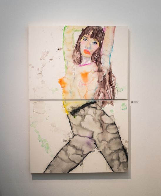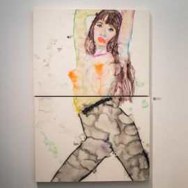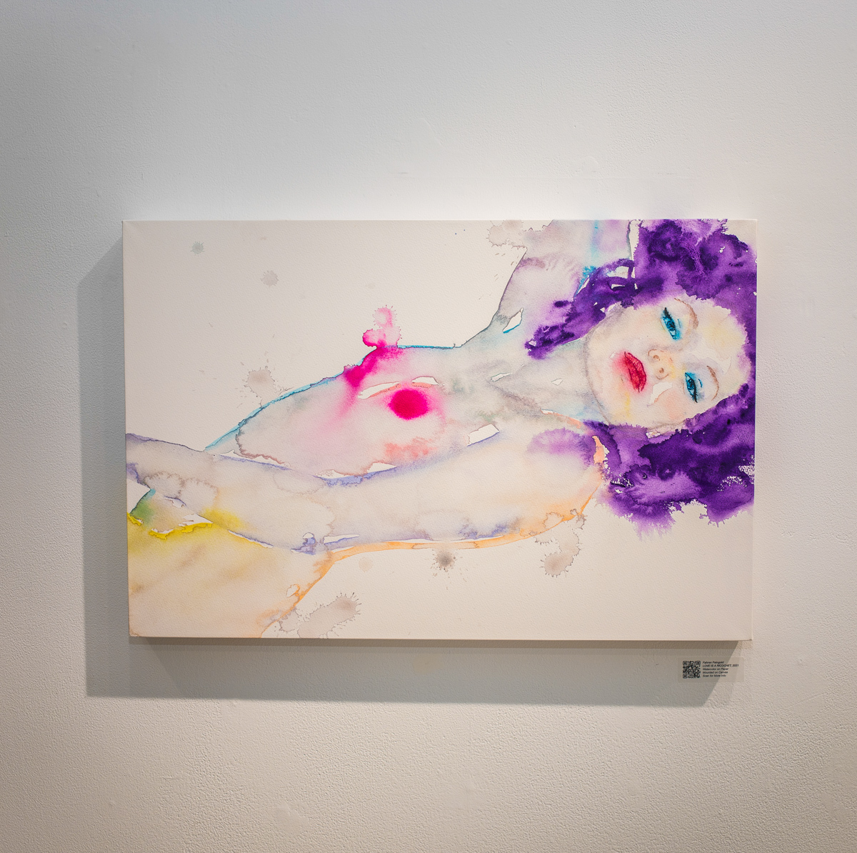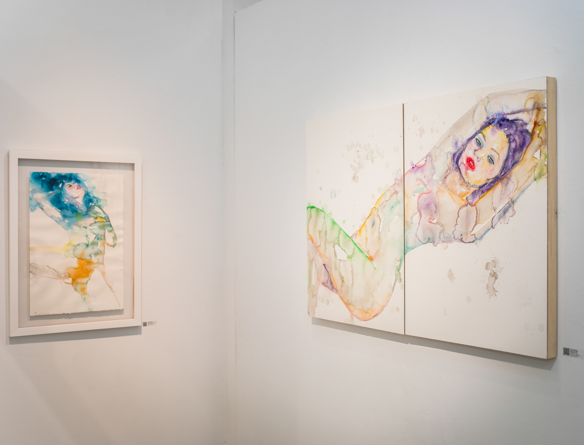 “In my new series of work, WET DREAMS, I return to the female form. I explore the relationships between beauty, sensuality, and nudity through my own female narrative lens. I want my viewer to feel the colors of that expression. I want my watercolors to wash over them, gently inviting them to sink deeper into the subjects, not just in the erotic sense. The series exposes the unclothed form not as a sexual act but rather a revelation in body and mind connectedness.”
