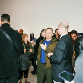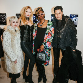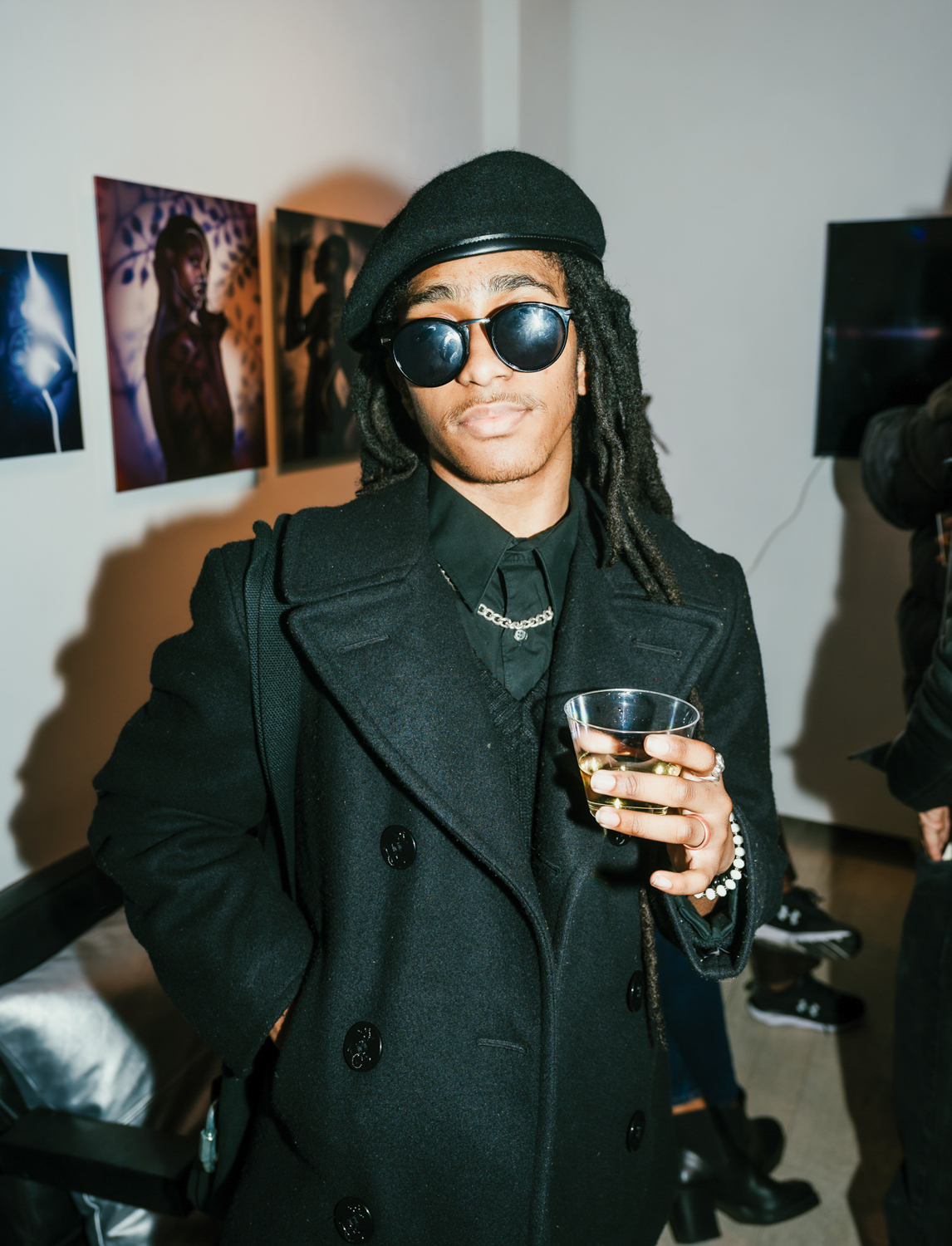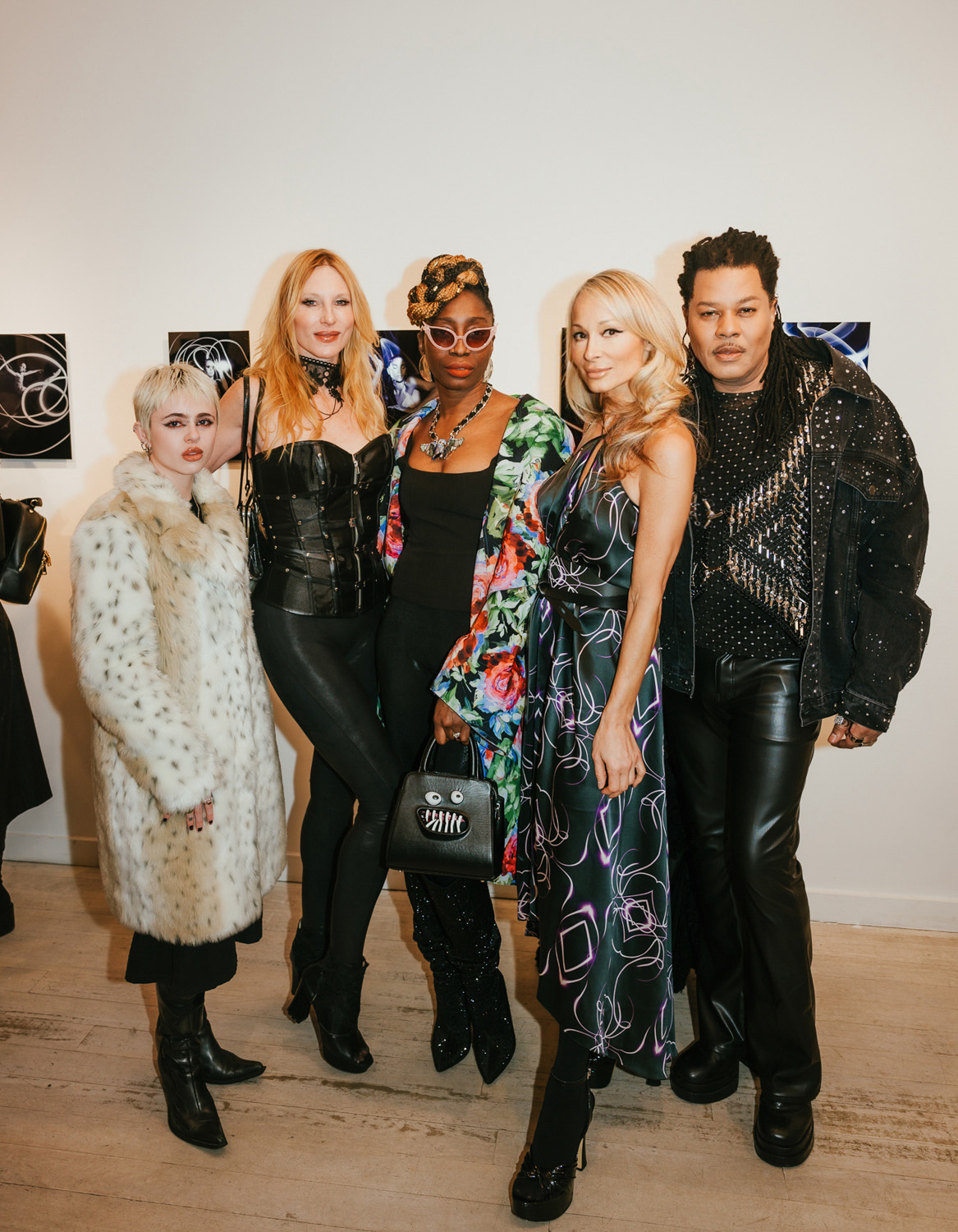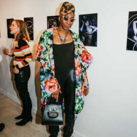 Jeffrey Dread and guests attend Indira Cesarine “LUMIÈRE” Solo Exhibition Reception + Artist Talk, Curated by MakersPlace at The Untitled Space (Photography by Jade Greene)