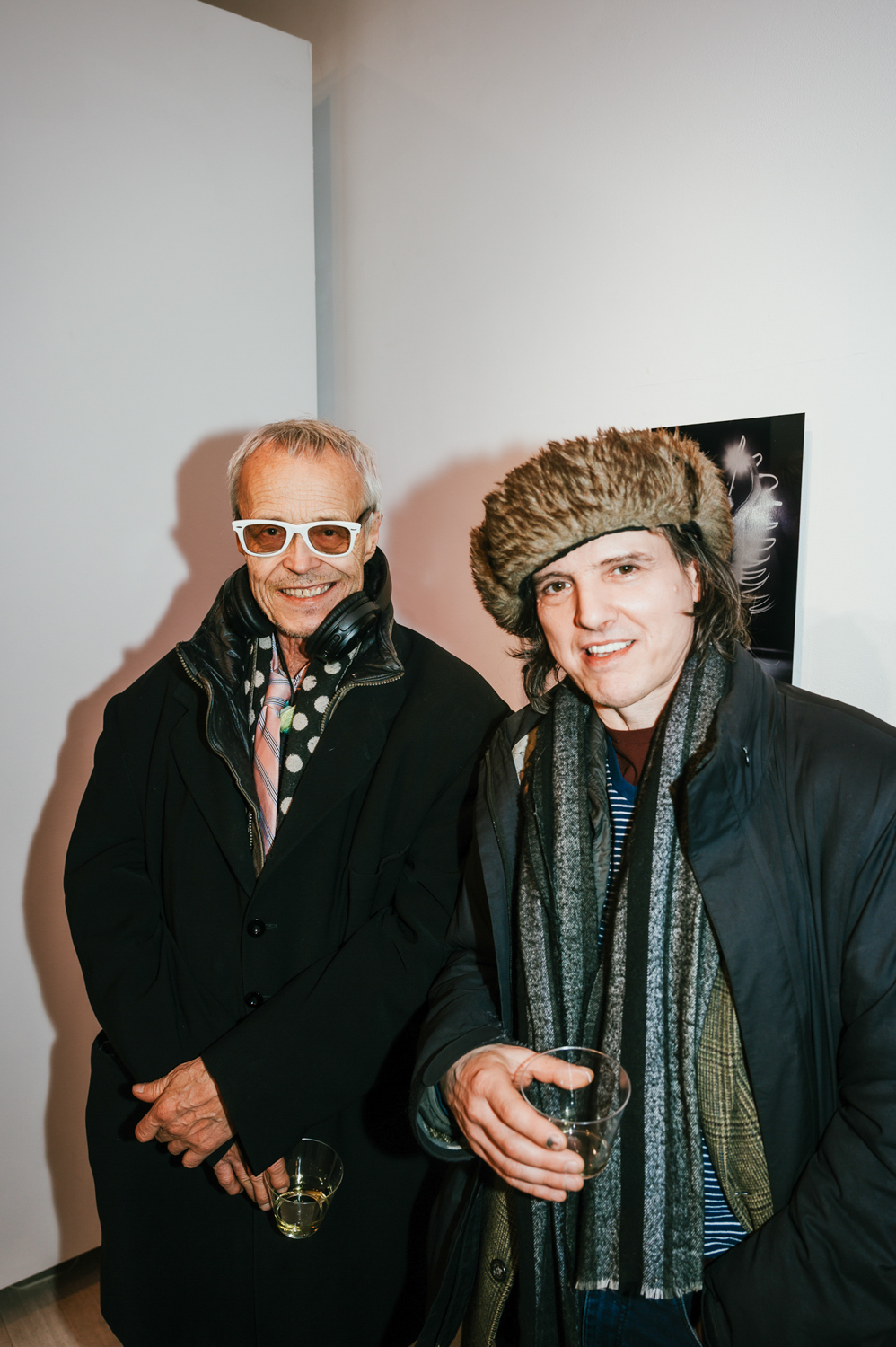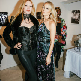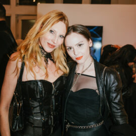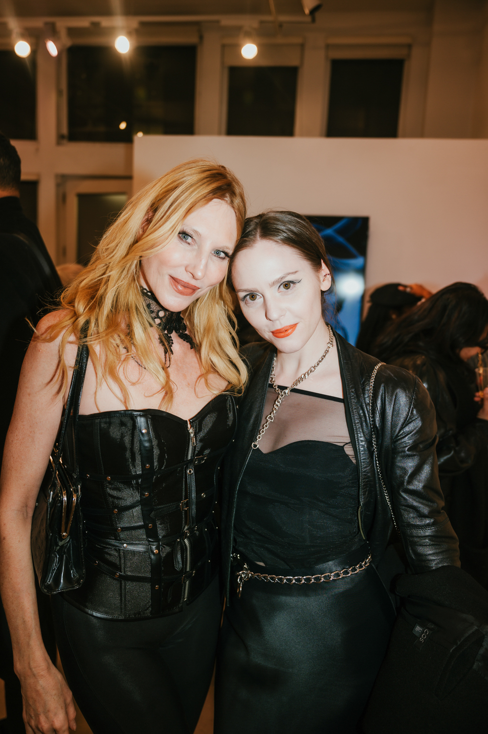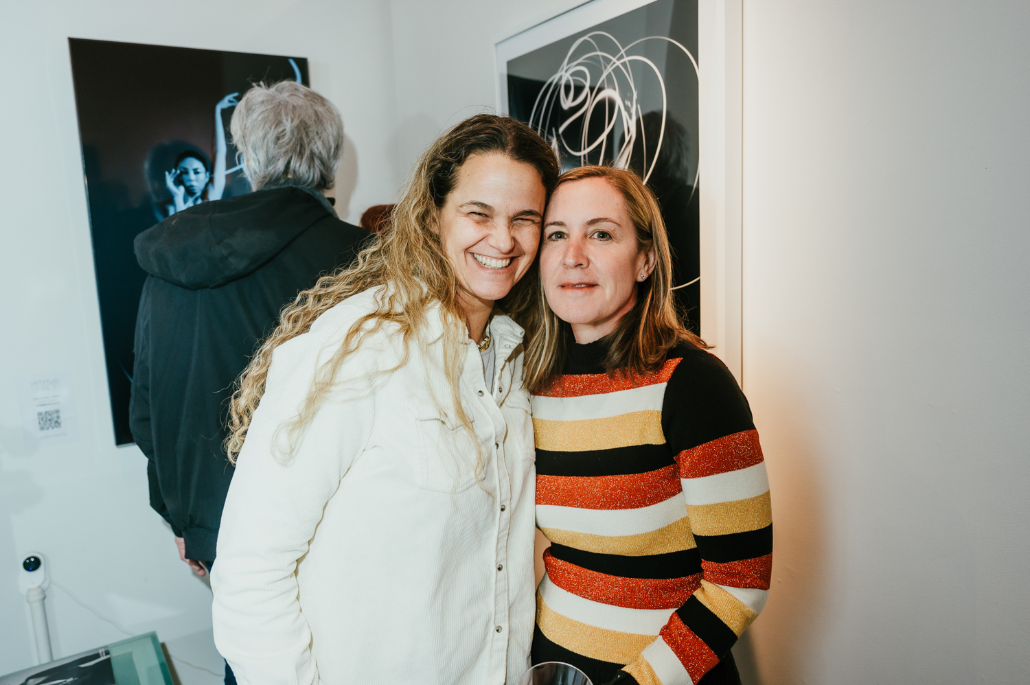 Katherine Crockett and Helena Calmfors attend Indira Cesarine's “LUMIÈRE” Solo Exhibition Reception + Artist Talk, Curated by MakersPlace at The Untitled Space (Photography by Jade Greene)