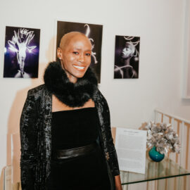 Indira Cesarine at the “LUMIÈRE” Solo Exhibition Reception + Artist Talk, Curated by MakersPlace at The Untitled Space (Photography by Jade Greene)
