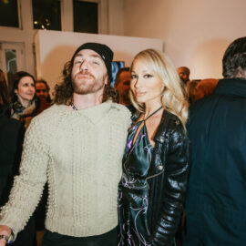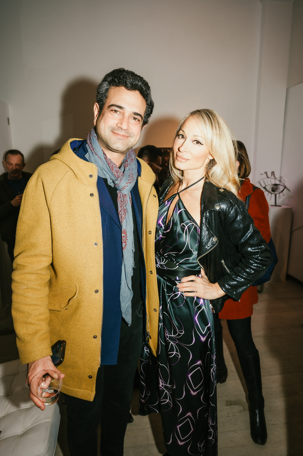 Sergio Barrale and Indira Cesarine at Cesarine's “LUMIÈRE” Solo Exhibition Reception + Artist Talk, Curated by MakersPlace at The Untitled Space (Photography by Jade Greene)