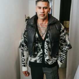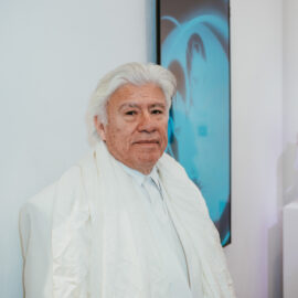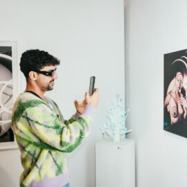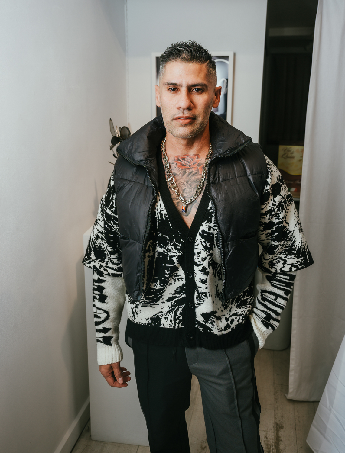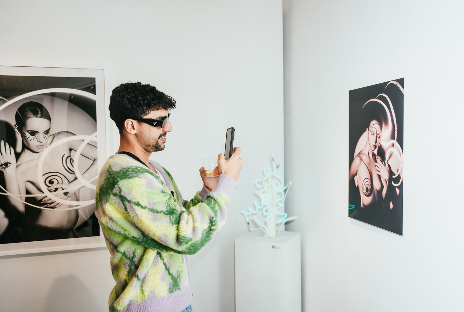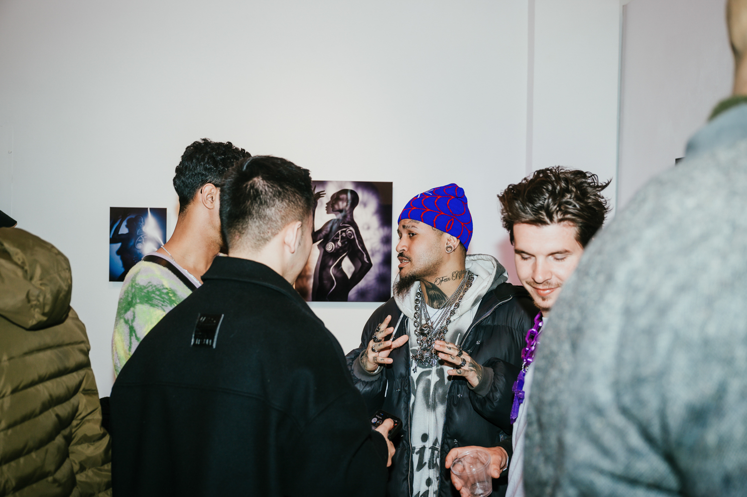 Jose Illezzz attends Indira Cesarine “LUMIÈRE” Solo Exhibition Reception + Artist Talk, Curated by MakersPlace at The Untitled Space (Photography by Jade Greene)