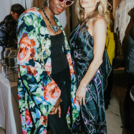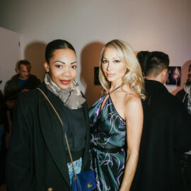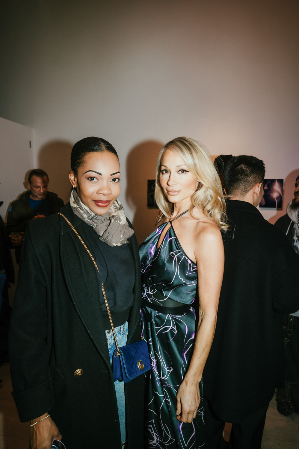 Jasmine Blandford and Indira Cesarine at Cesarine's “LUMIÈRE” Solo Exhibition Reception + Artist Talk, Curated by MakersPlace at The Untitled Space (Photography by Jade Greene)