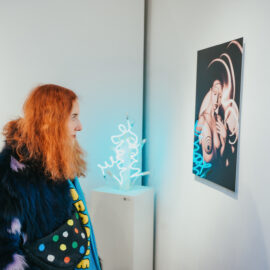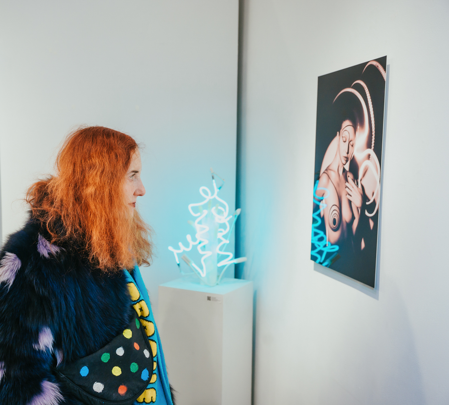 The exhibition unveils Cesarine’s latest series of surreal photographic light paintings, sculptures, and the “Lumière” series wearable art fashion collection, along with the debut of her animated photographic NFTs, which are available on the MakersPlace platform. In addition to her “LUMIÈRE” series, which includes animated light paintings, photography on aluminum, and large-scale photographic prints, viewers have the opportunity to experience a selection of Cesarine’s hand-welded steel and neon sculptures, celebrated video art films, and a selection of new works extending the exhibition in the new location.