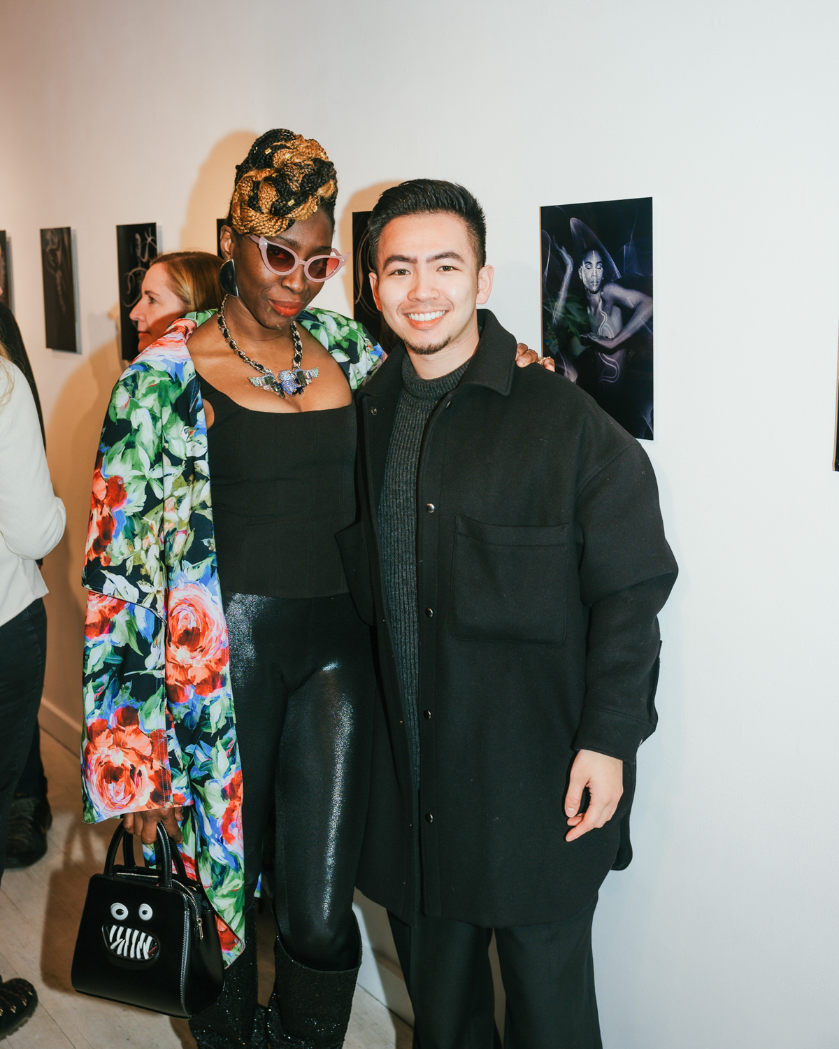 Tinu Naija and Kingson Chen attend Indira Cesarine “LUMIÈRE” Solo Exhibition Reception + Artist Talk, Curated by MakersPlace at The Untitled Space (Photography by Jade Greene)