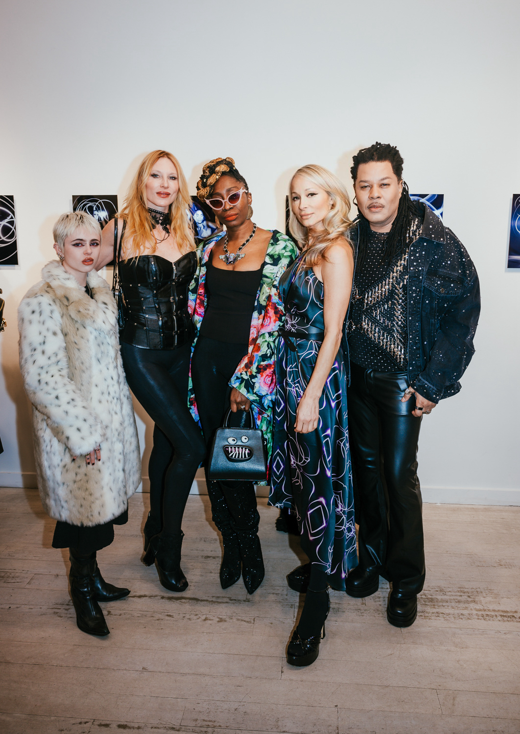Kenah Jonel, Katherine Crockett, Tinu Naija, Indira Cesarine, Ty-Ron Mayes attend Indira Cesarine's “LUMIÈRE” Solo Exhibition Reception + Artist Talk, Curated by MakersPlace at The Untitled Space (Photography by Jade Greene)
