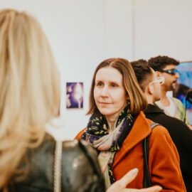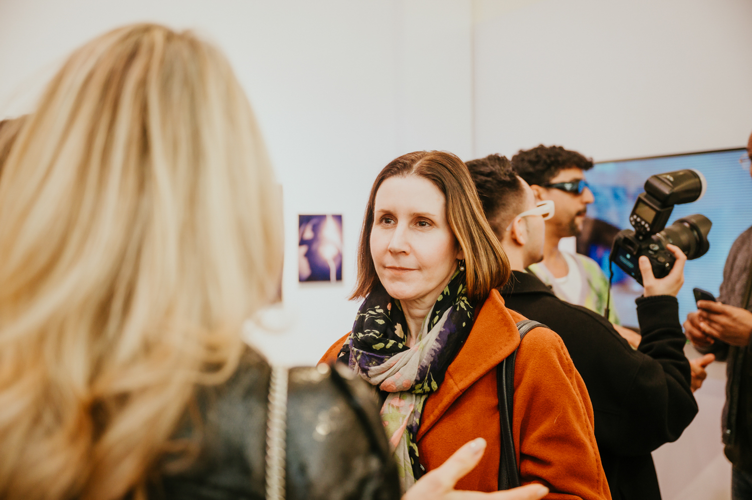 Curator Jessica Marinaro at Indira Cesarine's “LUMIÈRE” Solo Exhibition Reception + Artist Talk, Curated by MakersPlace at The Untitled Space (Photography by Jade Greene)