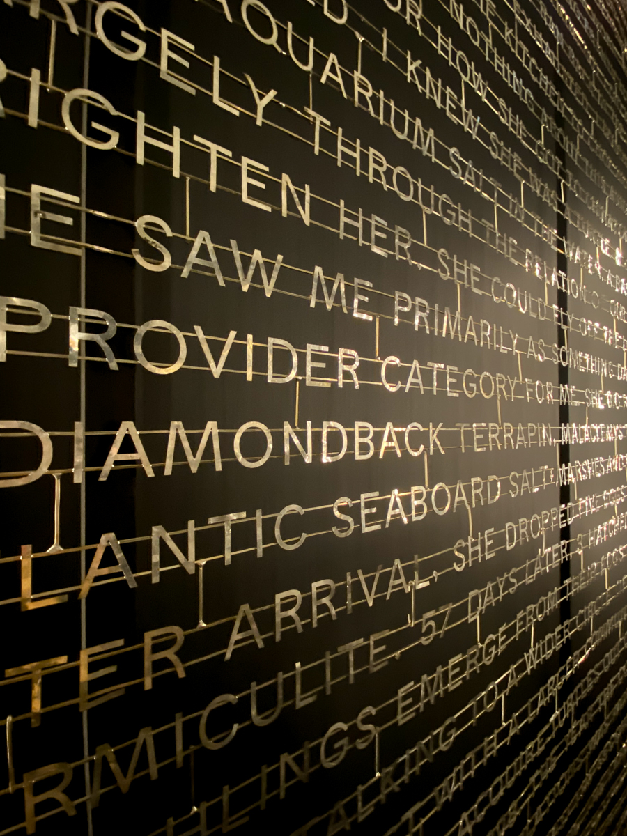 The title of the Biennial, Quiet as It’s Kept, is a colloquialism that is typically said prior to something– sometimes obvious– that should be kept secret. Curators Breslin and Edwards were inspired by the ways novelist Toni Morrison, jazz drummer Max Roach, and artist David Hammons have invoked it in their works.