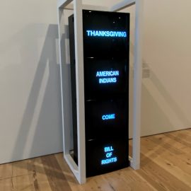 The artists included in the Biennial investigate the ongoing racial and economic inequalities and polarizing politics in America, considering how these realities affect ideas of identity and community. Many of the artists face the pandemic and its consequences through their work. The definition of what constitutes “American” is explored, with the inclusion of artists from border cities in Mexico, First Nations artists in Canada, as well as other artists born outside of North America. Curator David Breslin described this year’s curatorial approach to the Biennial as “thinking with history, but making it radically new for the moment.”