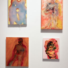 “These figures form in spite of this paradox, the gnawing growths that attempt to swallow or consume them, and the constant process of generation and dissolution. They resist naturalism not to obscure, but to express something not easily depicted: how a feeling, or a complex chord of sensations, looks without regard to representations aligned with the visual electromagnetic spectrum. The resulting images are like anatomical studies of emotional states as if seeing from the inside out.” – Michael Rose