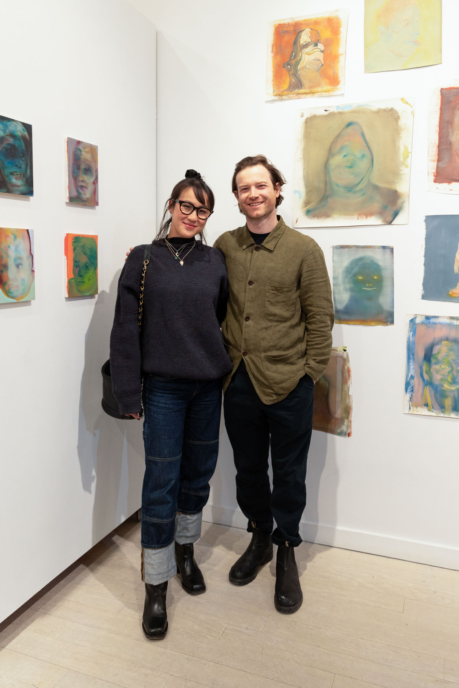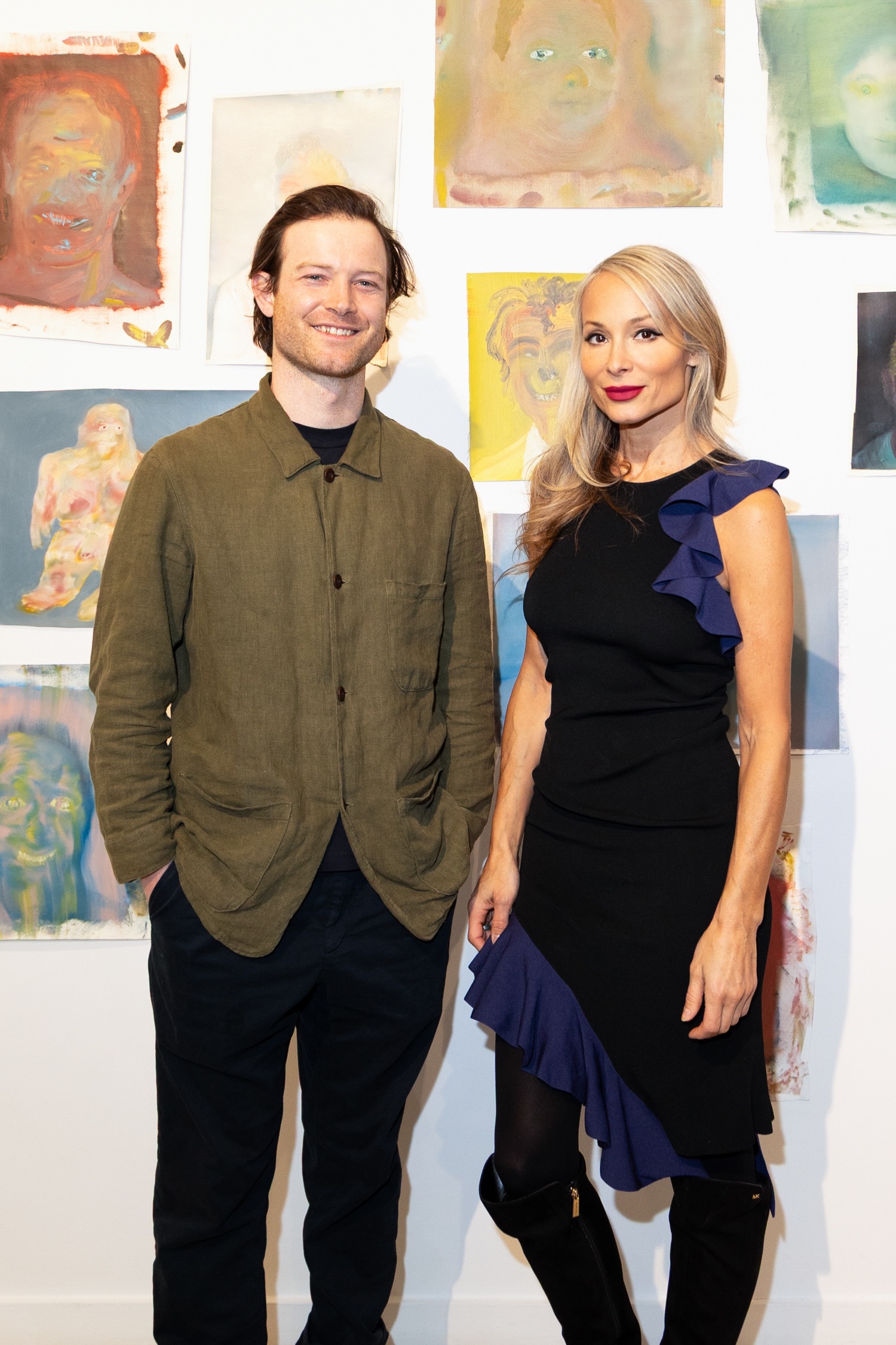 Michael Rose and Johanna attend his solo exhibition "In Spite of It", The Untitled Space Gallery, New York
