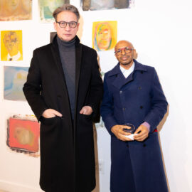 Artist Michael Rose and his father Charles Rose attend his exhibition “In Spite of It” at The Untitled Space Gallery in New York