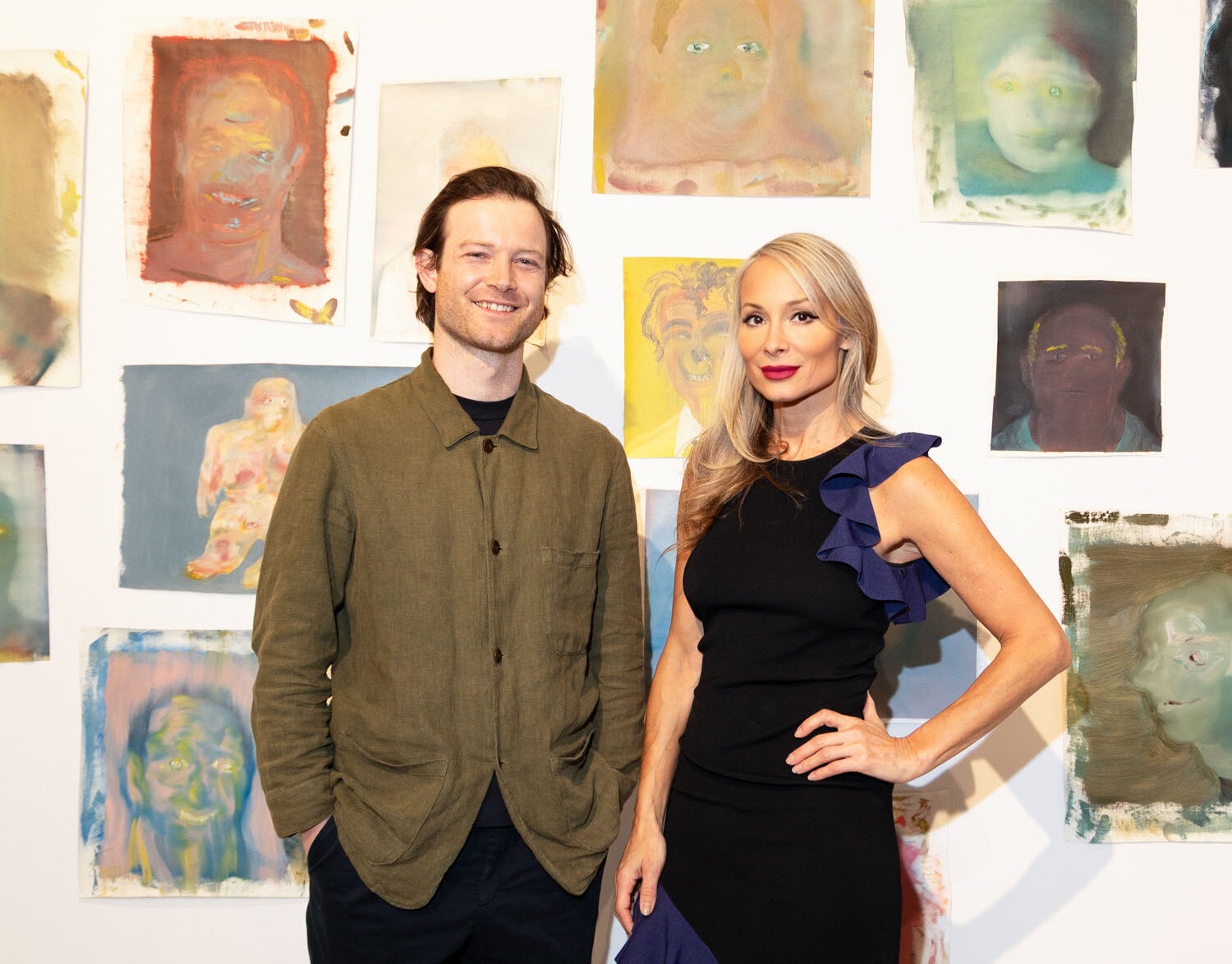 Indira Cesarine and Richard Booth attend the Michael Rose solo exhibition "In Spite of It", The Untitled Space Gallery, New York