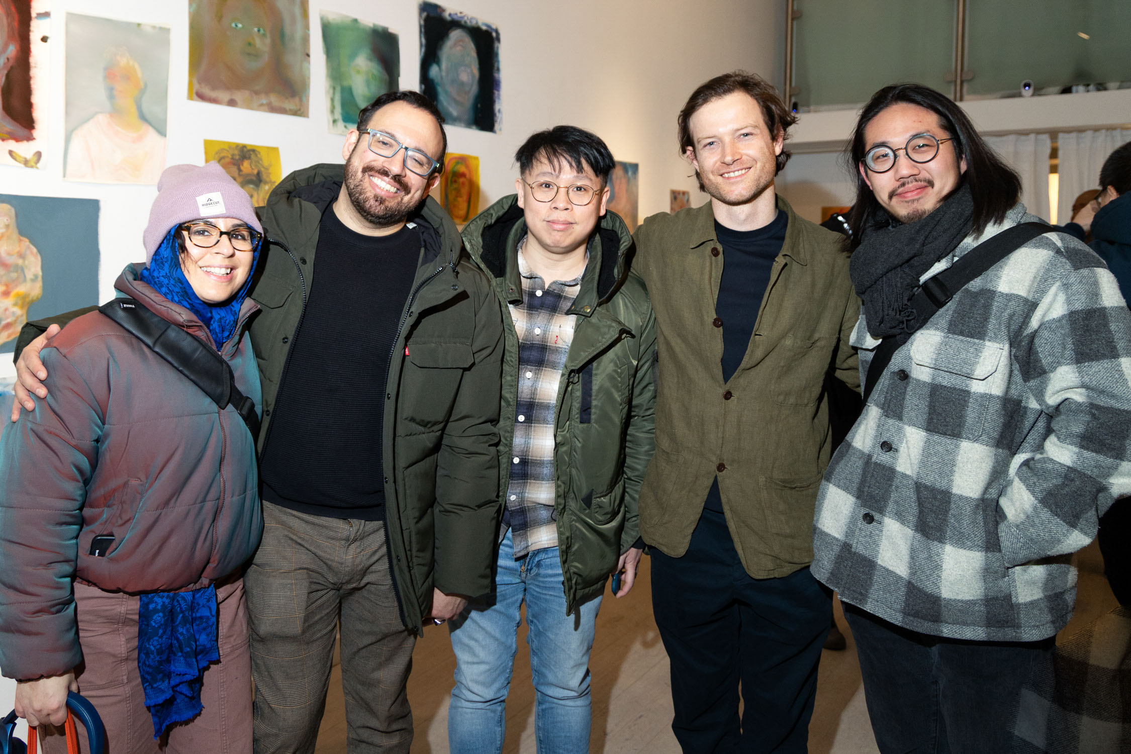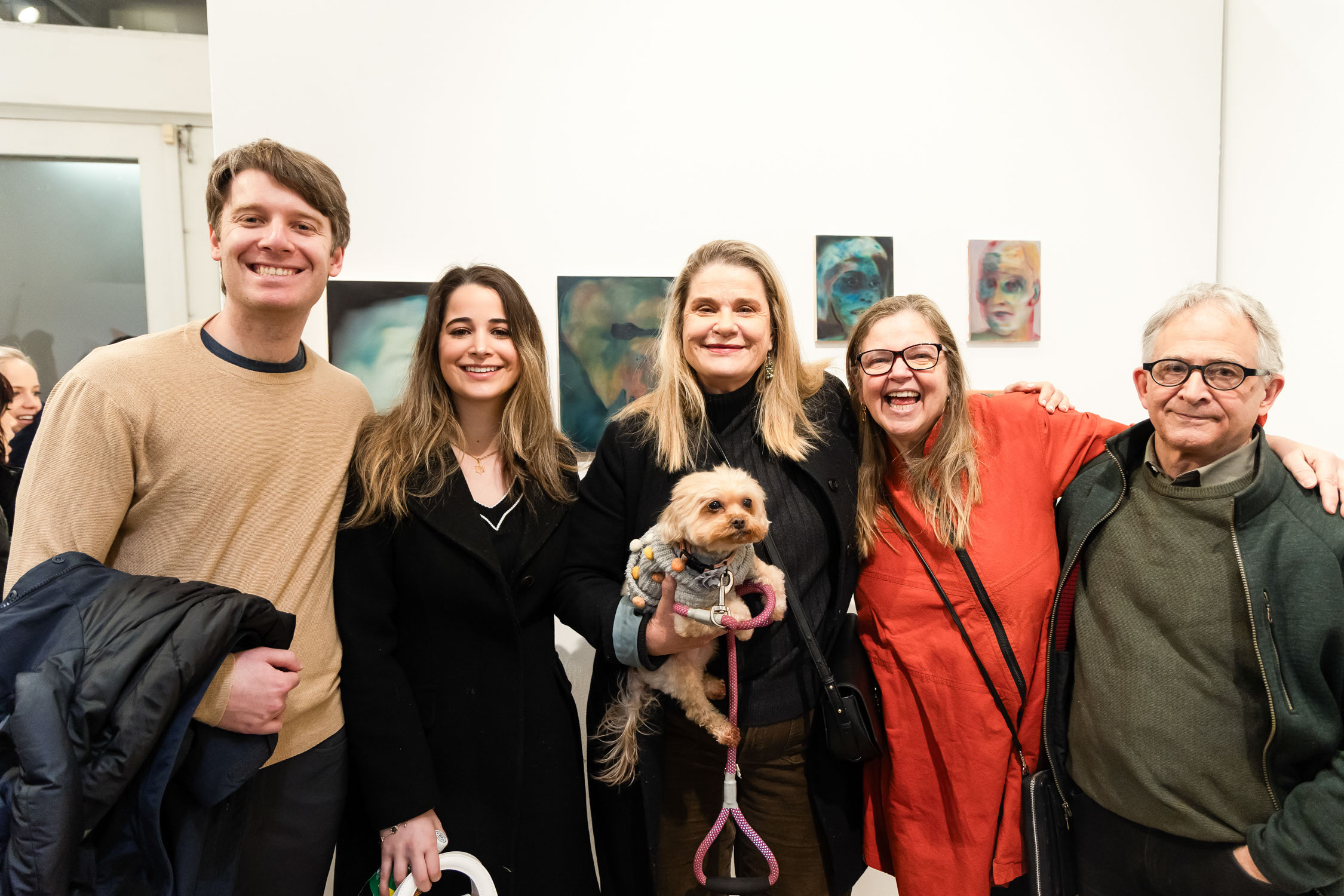 Miles, Ella, Pam, Maryann Thompson, and David attend Michael Rose solo exhibition "In Spite of It", at The Untitled Space Gallery, New York