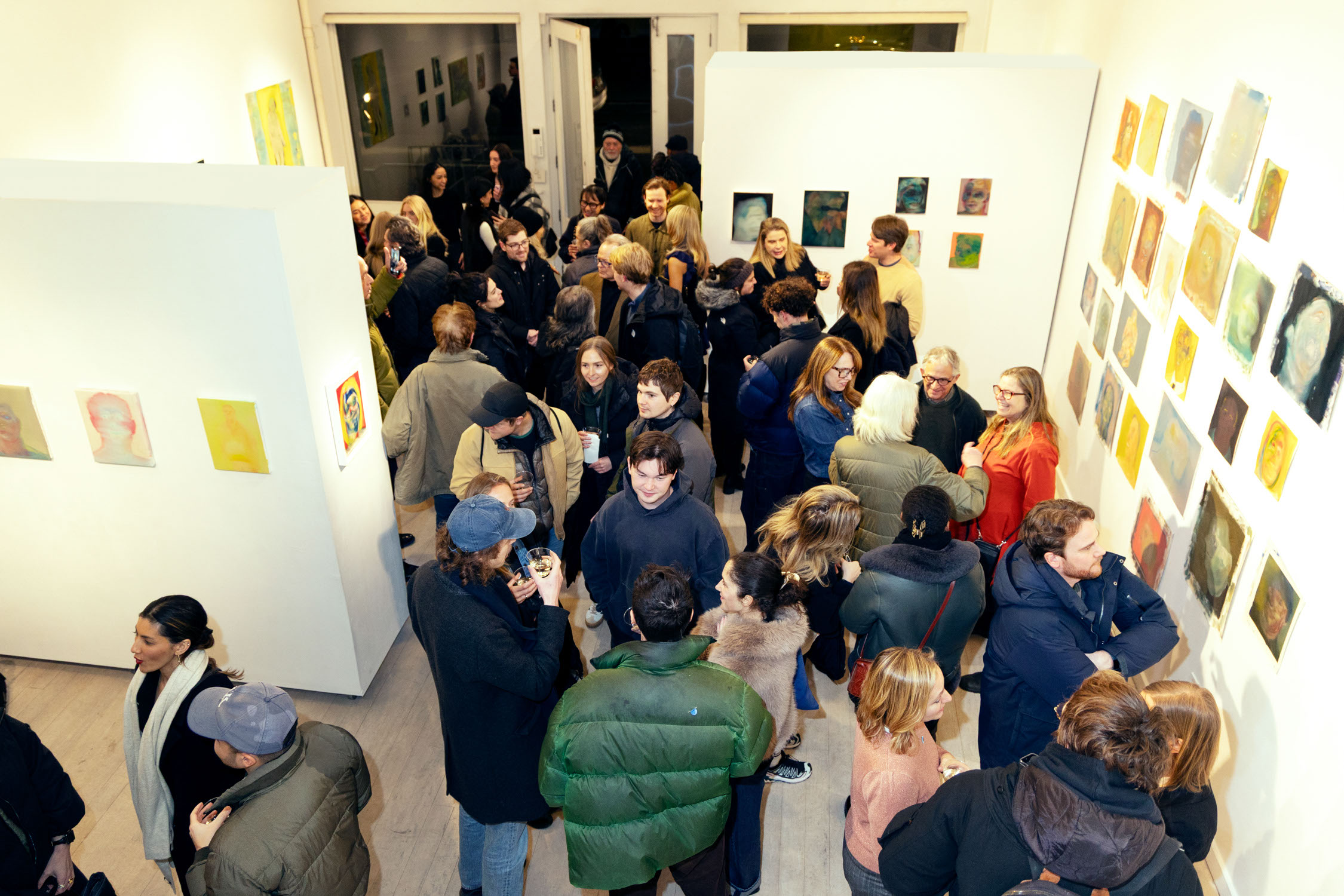 Attendees admire art at Michael Rose solo exhibition "In Spite of It", The Untitled Space Gallery, New York