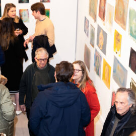 Attendees viewing artwork by Artist Michael Rose at his solo exhibition "In Spite of It", at The Untitled Space Gallery, New York