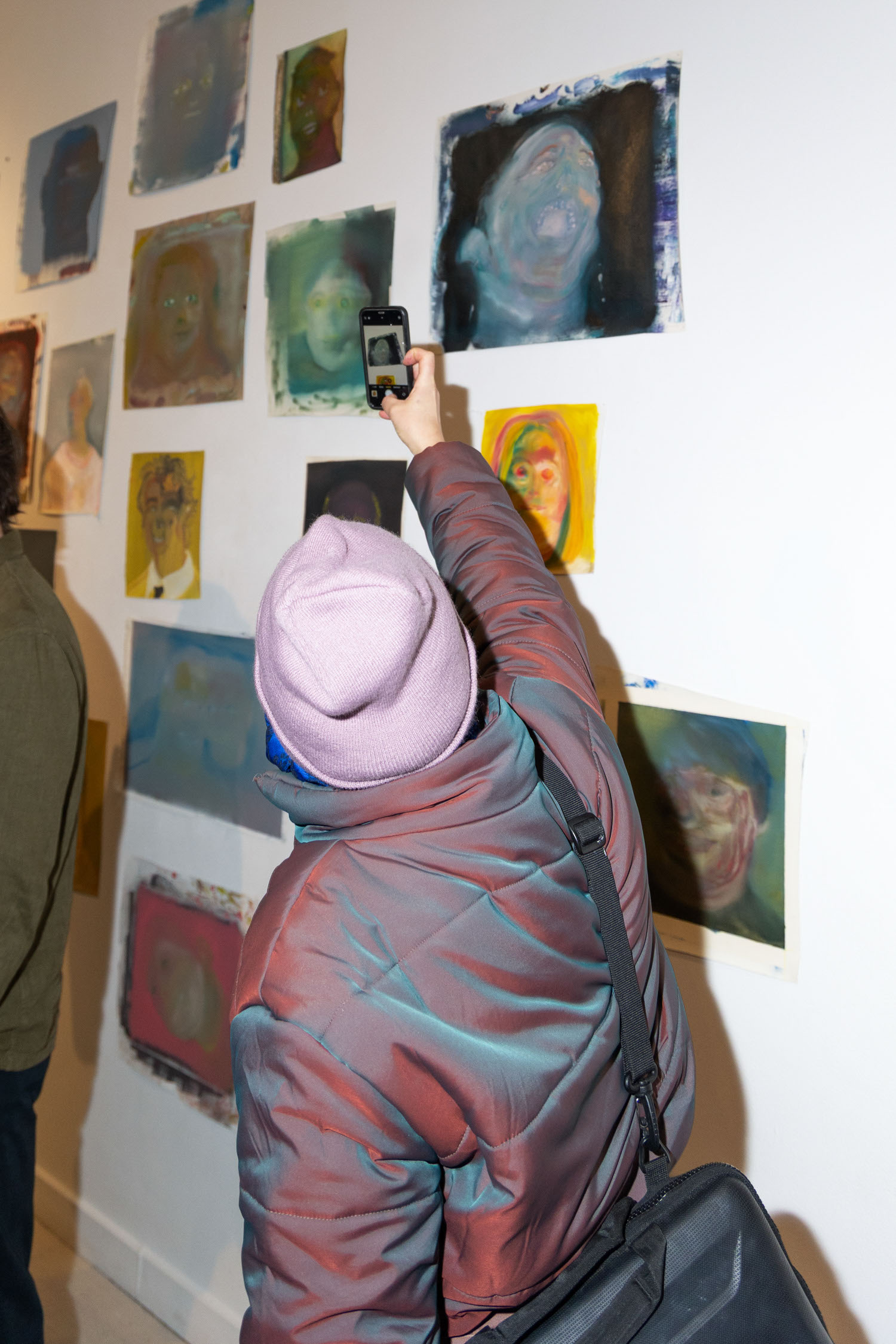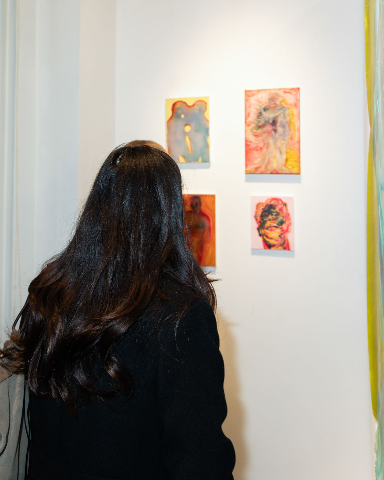 Attendee views art at Michael Rose solo exhibition "In Spite of It", The Untitled Space Gallery, New York