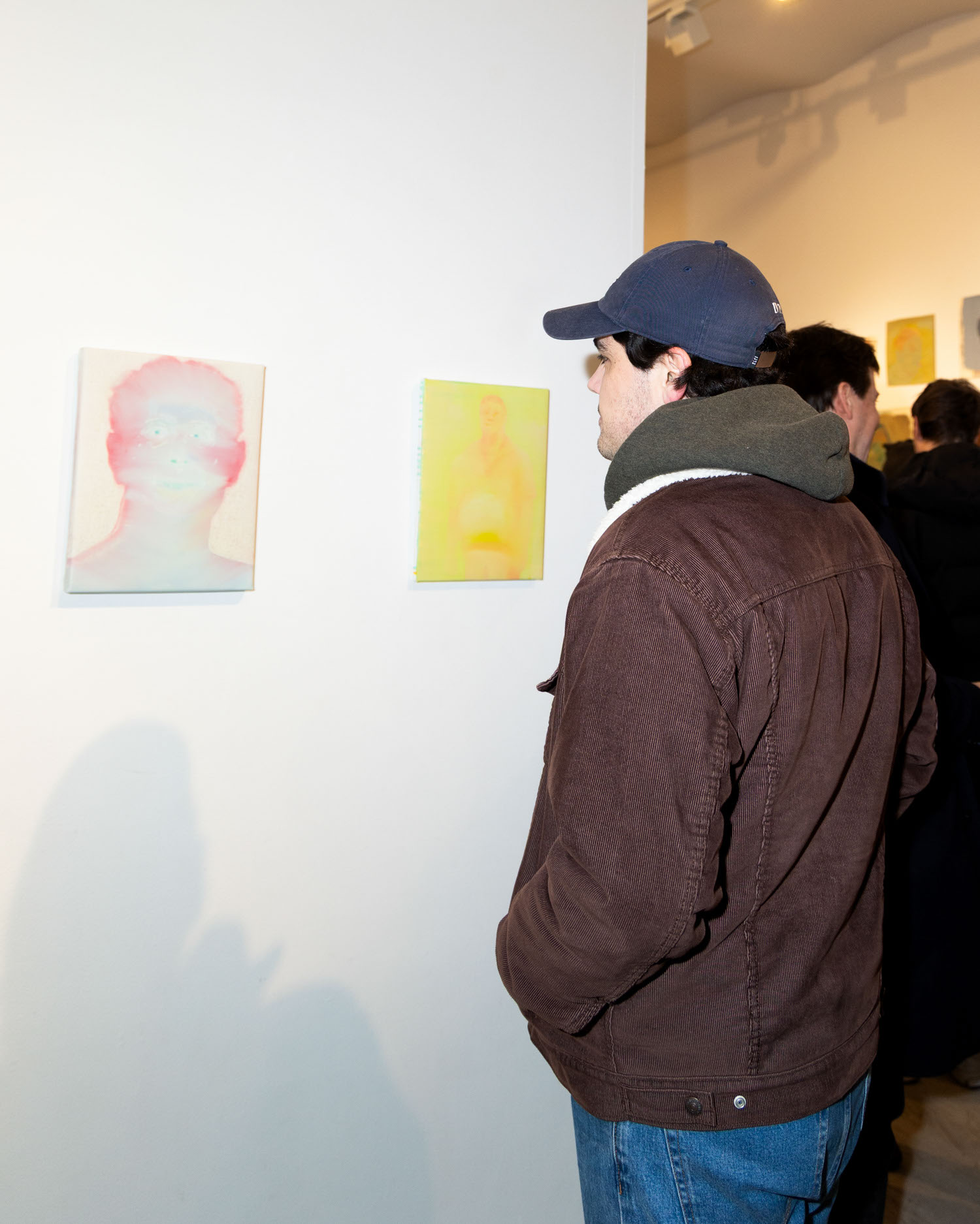 Attendee viewing artwork by Artist Michael Rose at his solo exhibition "In Spite of It", The Untitled Space Gallery, New York