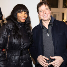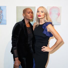 Indira Cesarine and Michael Rose attend the Michael Rose solo exhibition “In Spite of It”, The Untitled Space Gallery, New York