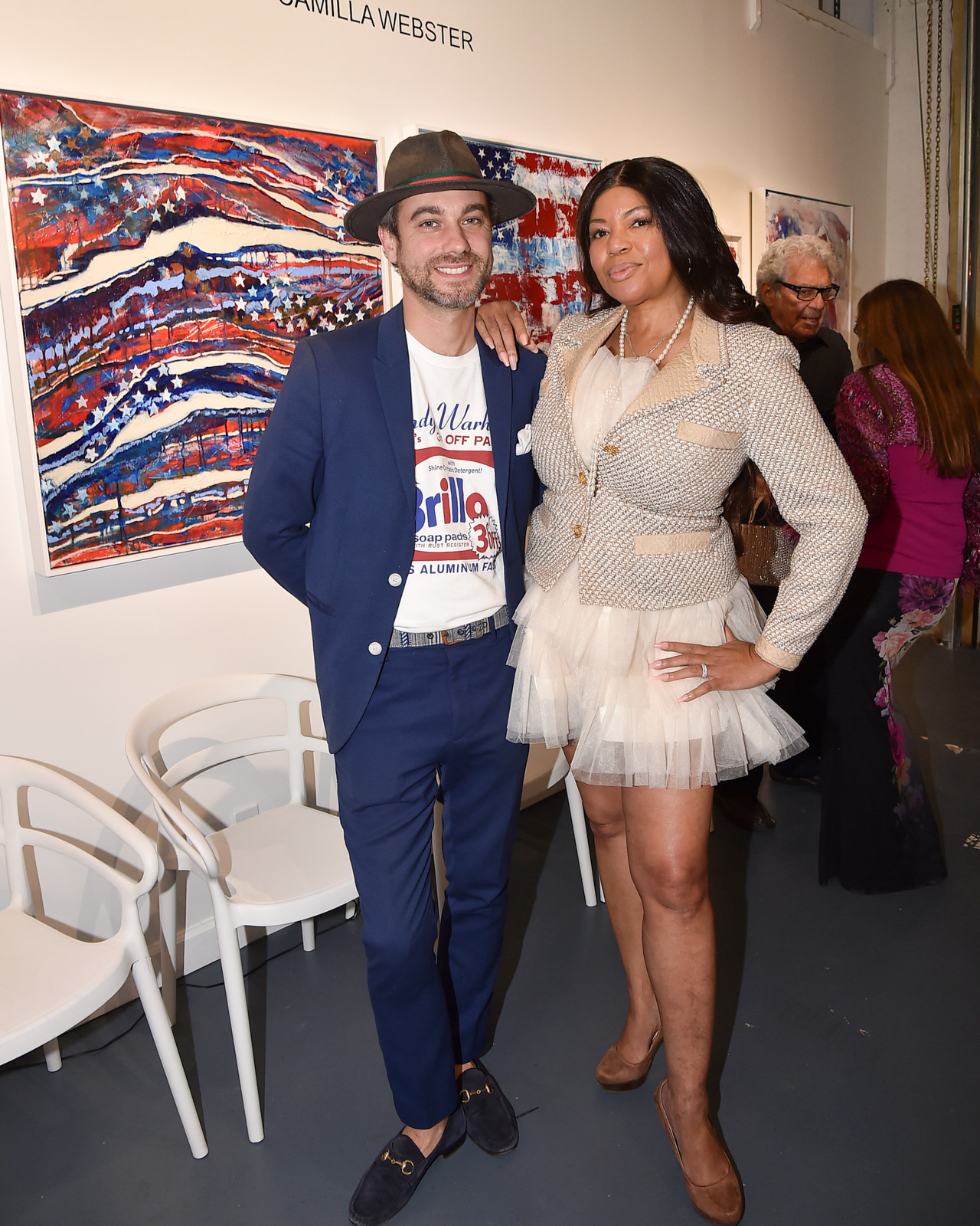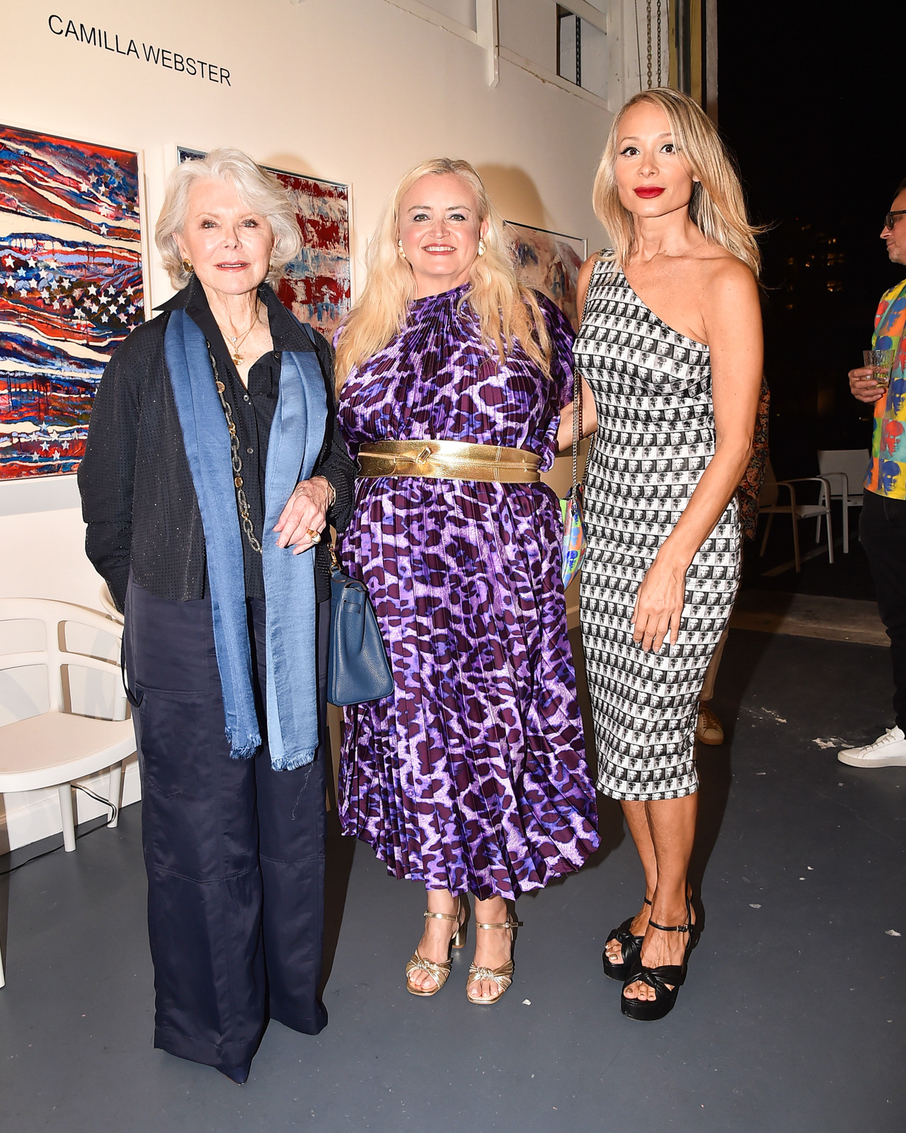 Guests at the event included artists Indira Cesarine, Karen Bystedt, and Camilla Webster as well as Alexis Cameron, Andrew Sneath, Ann Heap, Barbara Crocker, Bill Dickie, Cece Black, Chris Cameron, Christopher Johnson, Dan Bauer, Dan High, David Bush, David Hochberg, Debby Gervais, Denise Sandell, Doris Day, Ed Sandell, Elizabeth Fekkai, Estaryia Venus, Guy Palmer, Heather Byer, Hope Newman, Janie Glynn-Chivers, Jean-Marc Golden, Jill Revson, Julian Maison, Kate D’Hondt, Kenneth Fishel, Lacy Davisson, Lauren Day Roberts, Lee Black, Lindsey MacWilliam, Logan Horne, Maria Fishel, Michael Cummings, Nancy Stone, Nicholas Kattar, Pamela O’Connor, Patrick McMullan, Paul Lowerre, Philip Ross Munro, Raquel Cameron, Raquel Palmer, Richard Booth, Richard Earl, Rick Gervais, Rick Rose, Ron Burkhardt, Simon Glynn, Tim McVay, Tom Golden, and Ursula Lowerre.