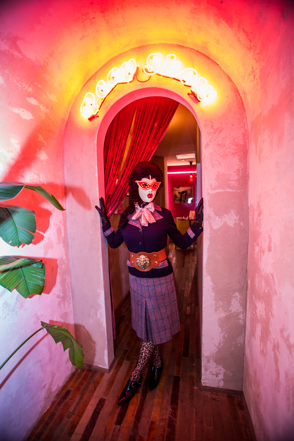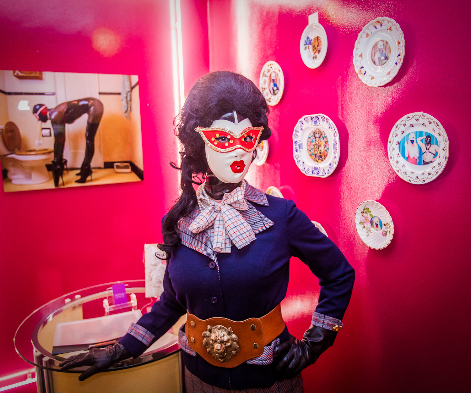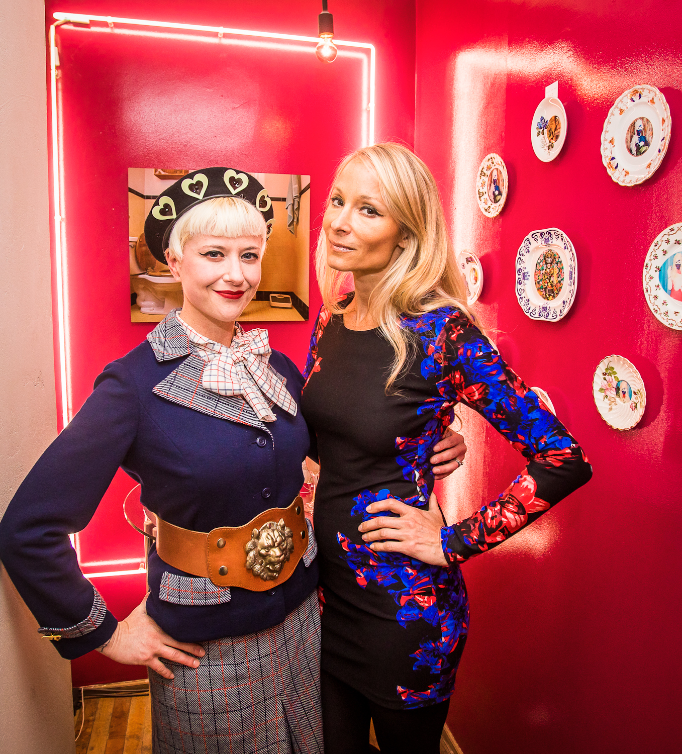 On Saturday February 8, The Untitled Space and Fleur Du Mal presented a special New York Fashion Week performance with artist Kat Toronto aka “Miss Meatface” in celebration of her exhibit “Peep Show” being shown at Fleur du Mal’s lower east side location. Indira Cesarine, founder of The Untitled Space and Jennifer Zuccarini of Fleur du Mal welcomed guests from the art and fashion scene to check out her exhibition of photography and ceramic photo plates. Attendees were served champagne cocktails and were able to meet and get their photos taken with the artist in her “Miss Meatface” latex attire.