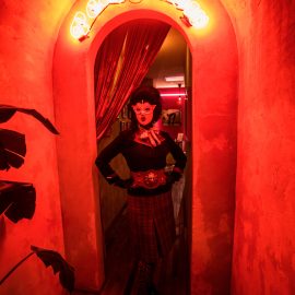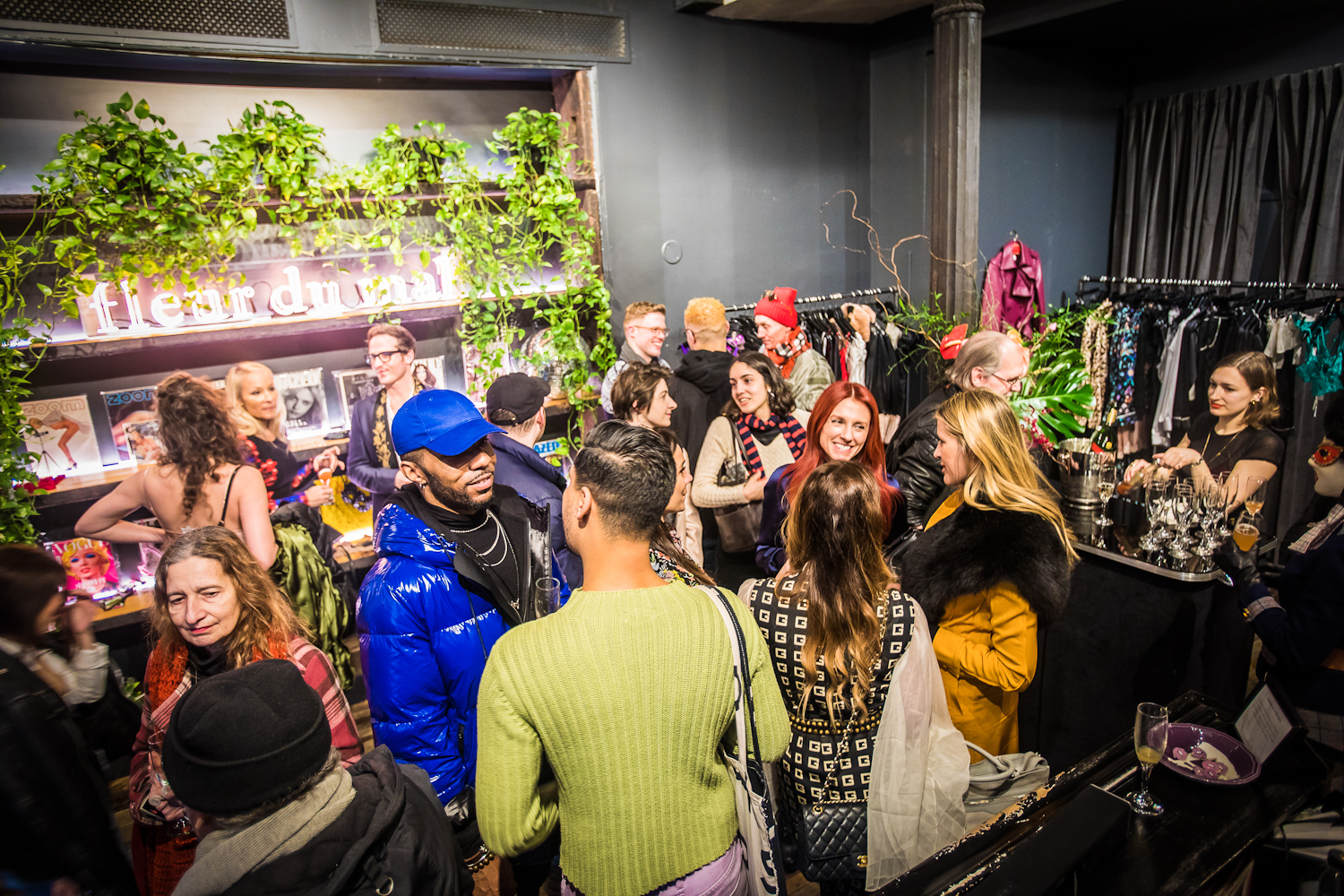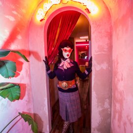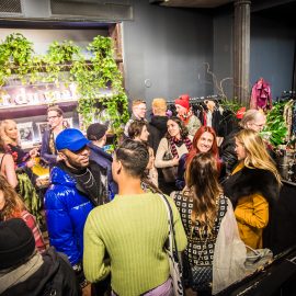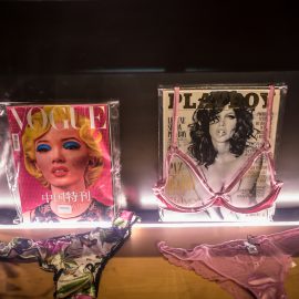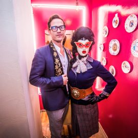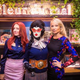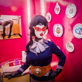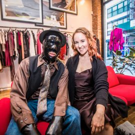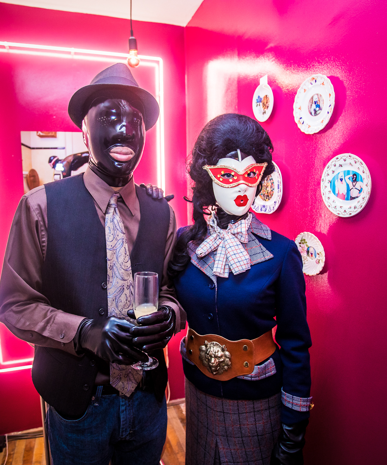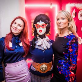 On Saturday February 8, The Untitled Space and Fleur Du Mal presented a special New York Fashion Week performance with artist Kat Toronto aka “Miss Meatface” in celebration of her exhibit “Peep Show” being shown at Fleur du Mal’s lower east side location. Indira Cesarine, founder of The Untitled Space and Jennifer Zuccarini of Fleur du Mal welcomed guests from the art and fashion scene to check out her exhibition of photography and ceramic photo plates. Attendees were served champagne cocktails and were able to meet and get their photos taken with the artist in her “Miss Meatface” latex attire.