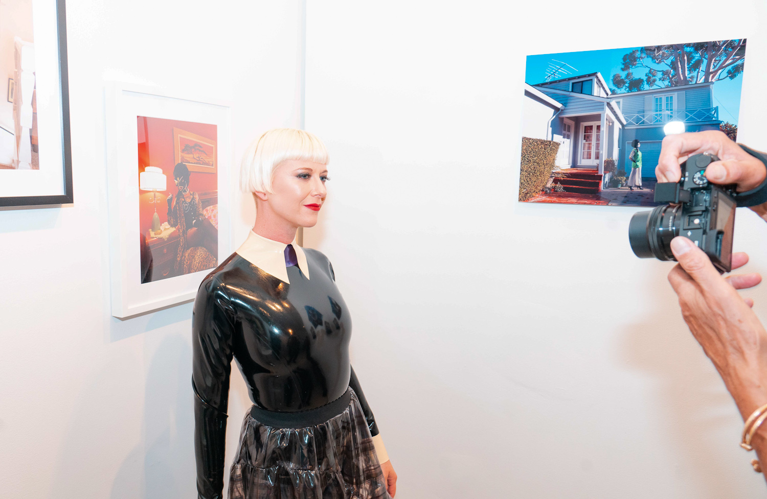 However, as Kat explored her relationship with the fetish community and reflected on her personal history, Miss Meatface began to morph into the latex-and-mask aesthetic that is seen throughout this gallery showing. Many of the images presented in the exhibit are also a reflection on her family history, as she frequently shot in historic, family homes owned by her grandparents, aunt, and father. “Miss Meatface keeps evolving,” Kat said. “It’s interesting, the twists and turns that my life takes, she just kind of goes with it and unveils something new to me every single time.”