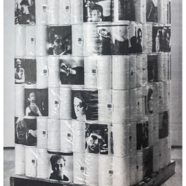 Artworks presented at FAIR include a range of works such as Jo Shane’s “President’s Choice”. This work was created in response to the Reagan Administration’s complete dismissal of the 1980’s AIDS Crisis. The work, a post-minimalist cube composed of “President’s Choice” brand toilet paper rolls, features portraits of loved ones and celebrities that died of AIDS during Ronald Reagan’s eight-year presidency.