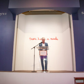On October 21, 2024, the New York Academy of Art hosted its 32nd annual Take Home a Nude art auction and party at Sotheby’s. This year’s event honored American artist Jane Dickson, whose distinctive, vivid portrayals of urban life have captivated audiences and critics. With an uncanny eye and masterful skill, Dickson captures gritty, haunting, nocturnal cityscapes that delve deep into overlooked corners of urban existence. Her work explores the underbelly of society through subjects like strip clubs, diners, motels, sex workers, and their respectable counterparts: suburban homes, driveways, or businessmen, each rendered in an eerie light that suggests the viewer question what’s going on beneath the surface. Known for using unconventional surfaces like carpet and sandpaper, Dickson’s paintings render urban subjects in haunting textures, layered in neon and darkness. Currently, her work is on display at KARMA Gallery in Los Angeles, “Art We There Yet,” a comprehensive survey of her highway paintings.