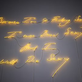 Since becoming one of the world’s most recognized and celebrated artists, Tracey Emin’s practice has spanned performance, drawing, painting, photography, sculpture, and film. She is a Royal Academician, having received her MA from the Royal Academy of Art, and is one of the two first women to be appointed professor at the Academy in London since its founding in 1768. “Everyone I Have Ever Slept With” (1995) and “My Bed” (1998), two of her most groundbreaking works, contributed significantly to the global feminist conversation and cemented Emin as one of the UK’s leading artistic voices.