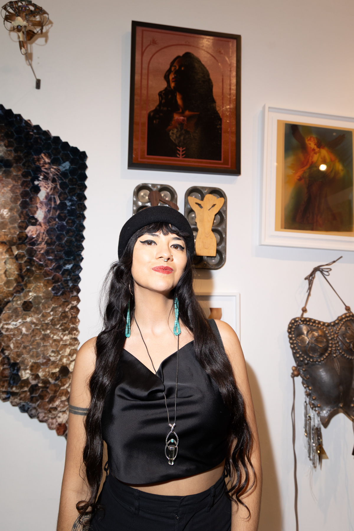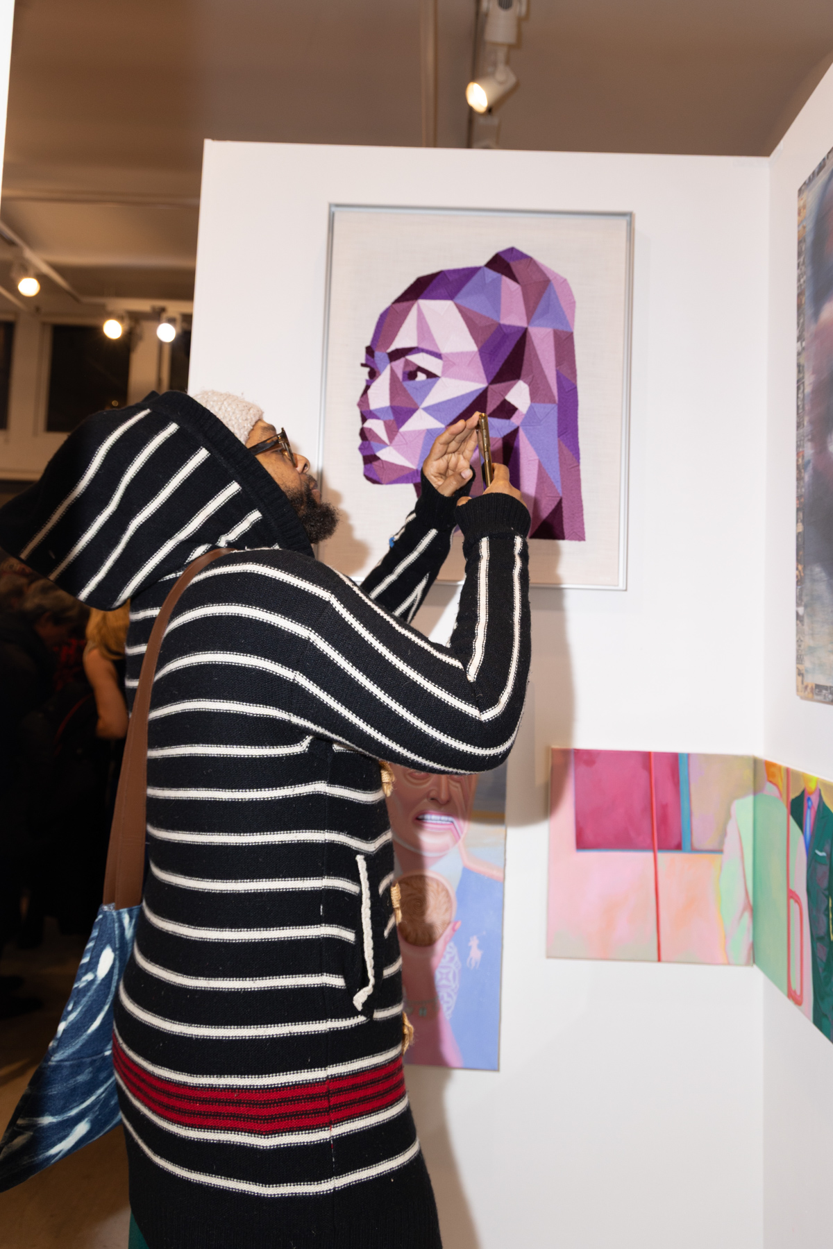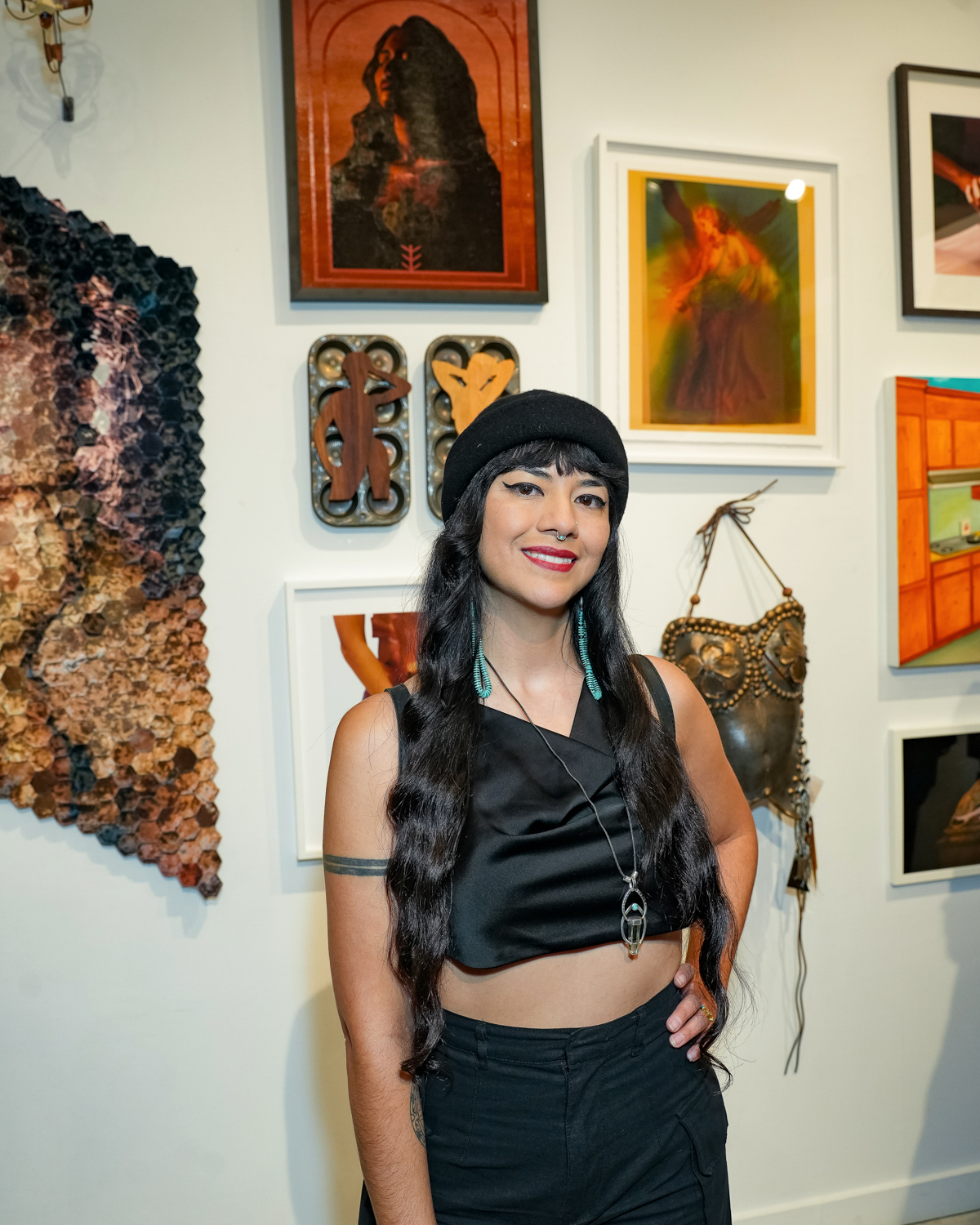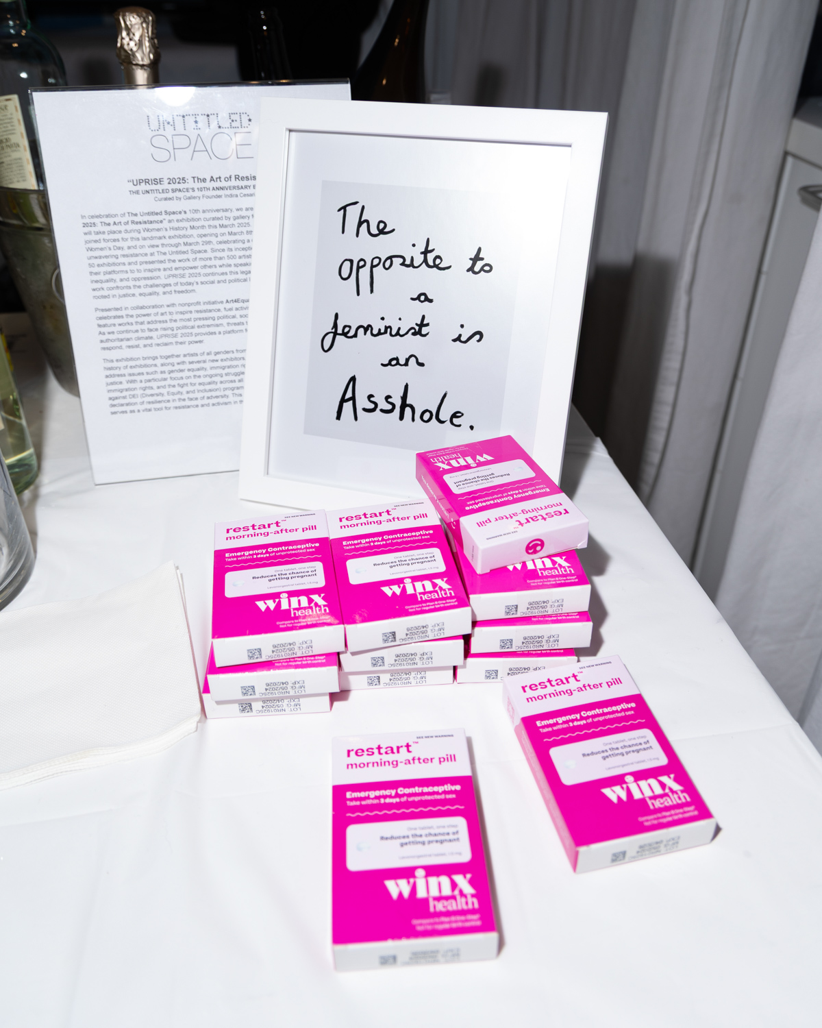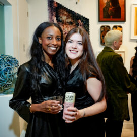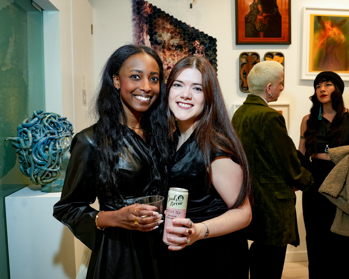 Guests enjoyed drinks sponsored by Owl’s Brew, Pamos, Ghia, Three Spirit, Topo Chico, and Smartwater, as well as giveaways courtesy of Winx while checking out the exhibit which featured artworks across all mediums, including painting, sculpture, photography, mixed media, digital art and video, along with works on paper and fiber art. The UPRISE 2025 exhibition brings together artists of all genders from The Untitled Space’s extensive history of exhibitions, along with several new exhibitors, many of whom have used their art to address issues such as gender equality, immigration rights, reproductive justice, and social justice.
