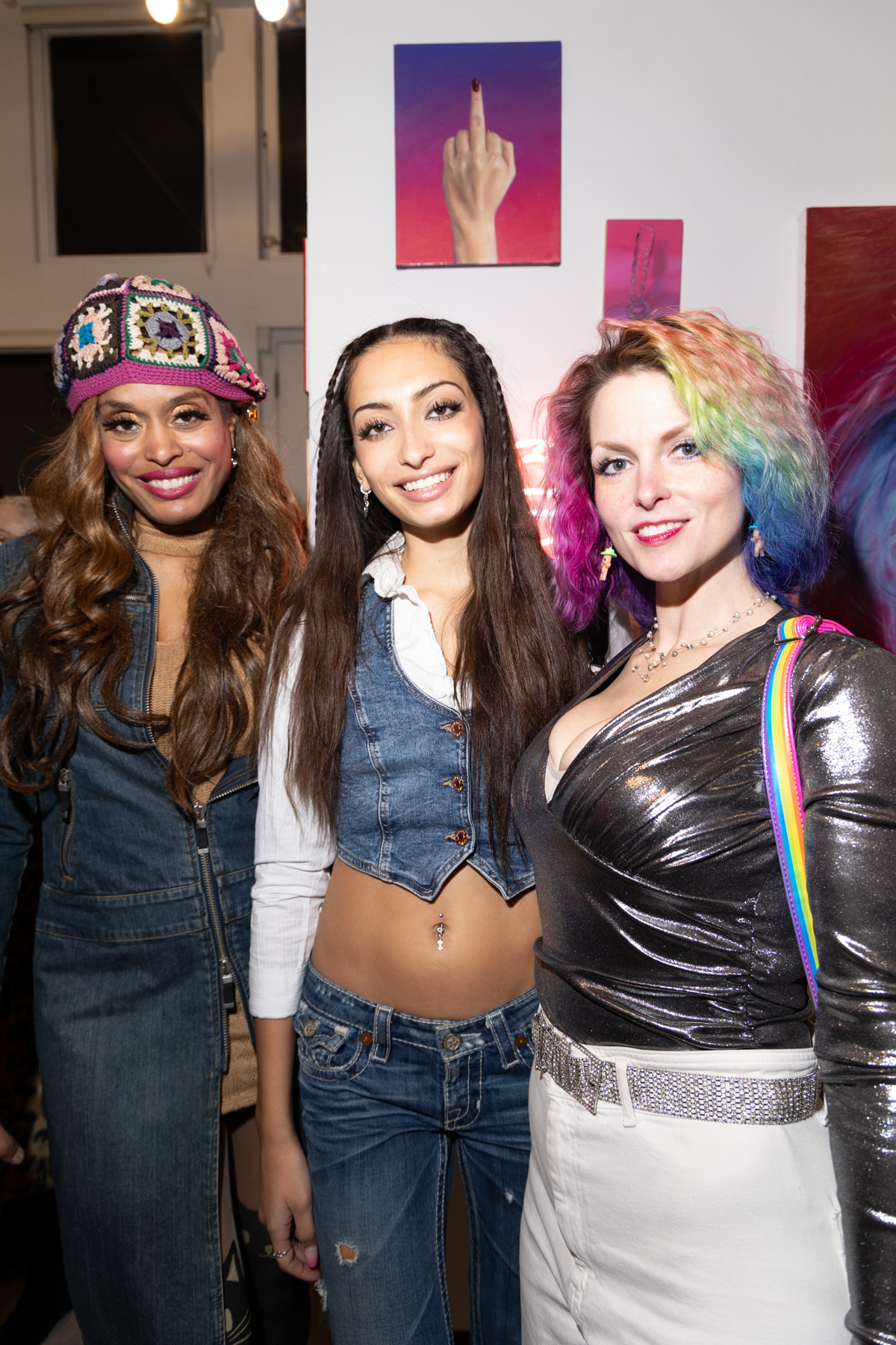 Josie Webb, Annika Connor, and Guest attends "UPRISE 2025: The Art Of Resistance" 10th Annivesary Exhibit Reception, The Untitled Space gallery, March 8, 2025 (Photography by Patrick Cashin Design)