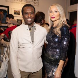 Tony Jones and Indira Cesarine attend "UPRISE 2025: The Art Of Resistance" 10th Annivesary Exhibit Reception, The Untitled Space gallery, March 8, 2025 (Photography by Patrick Cashin Design)